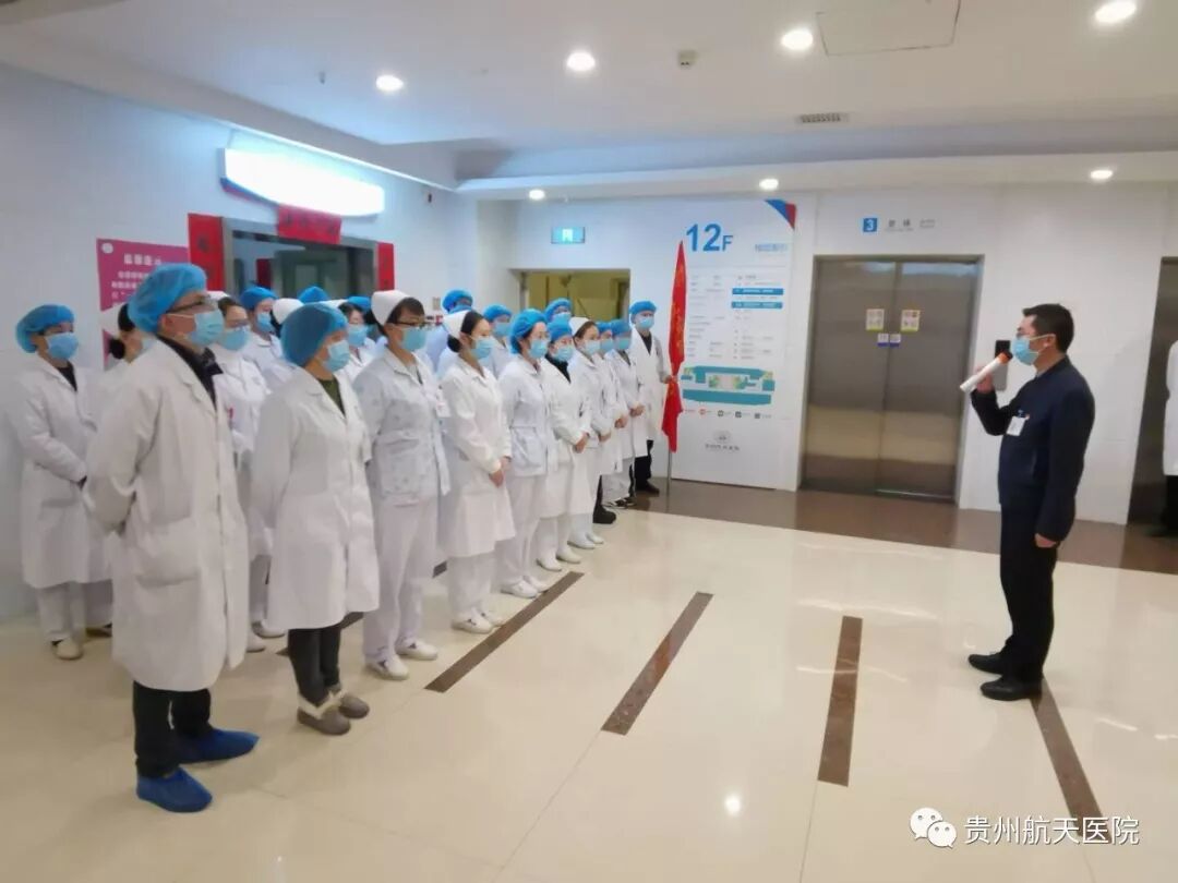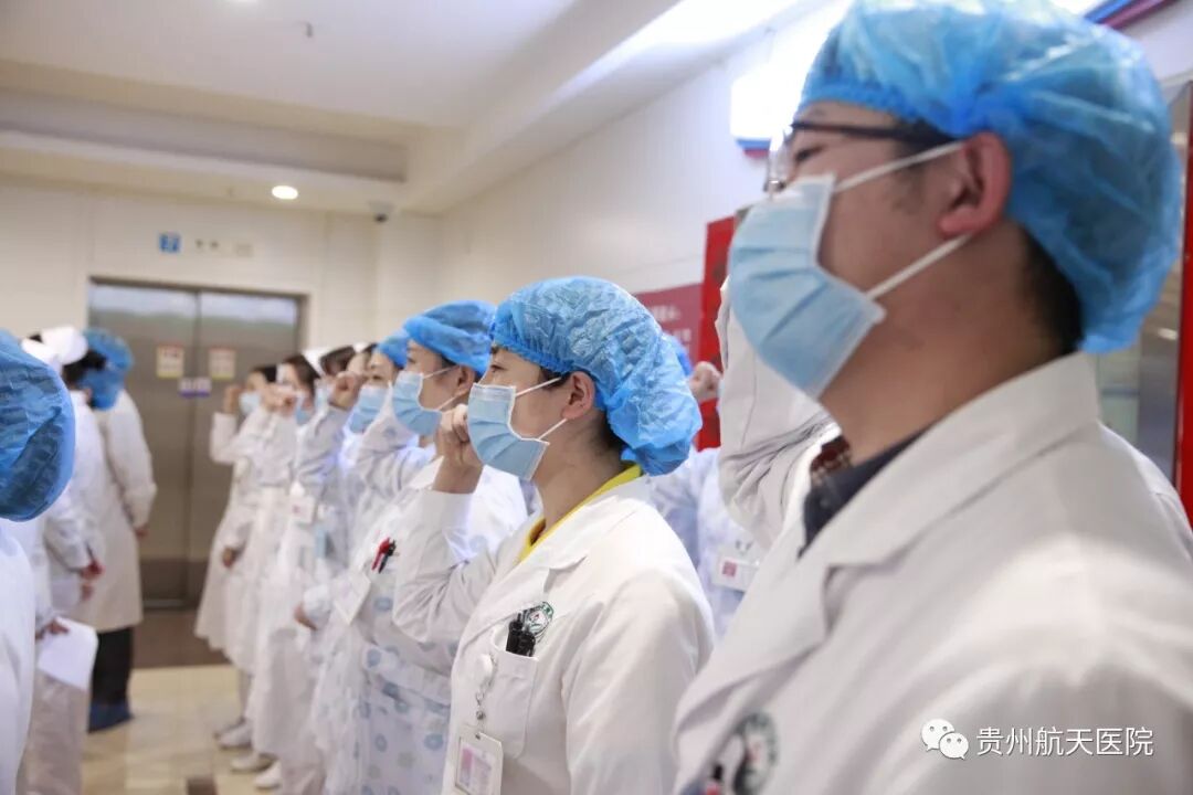 肾内科医生李丽华带领全体科室人员宣誓:“一定牢记习近平总书记‘生命重于泰山、疫情就是命令,防控就是责任’的指示精神。团结一心、群策群力、众志成城、科学救治,忘我工作!为确保人民群众身体健康和生命安全,不畏生死!誓死打赢疫情防控阻击战!”