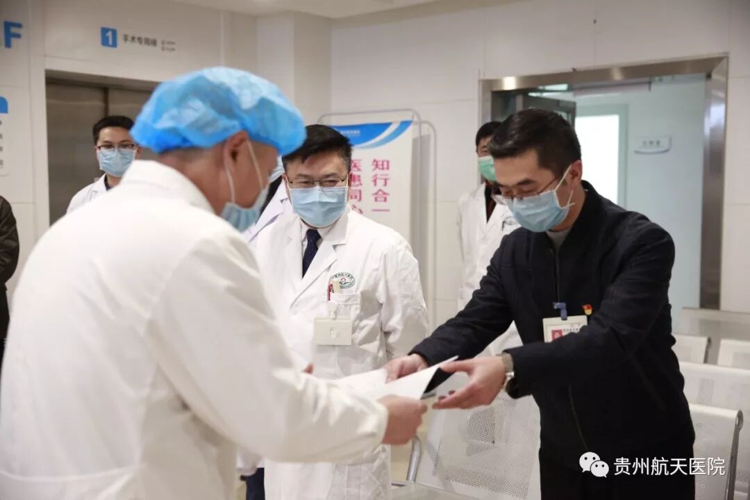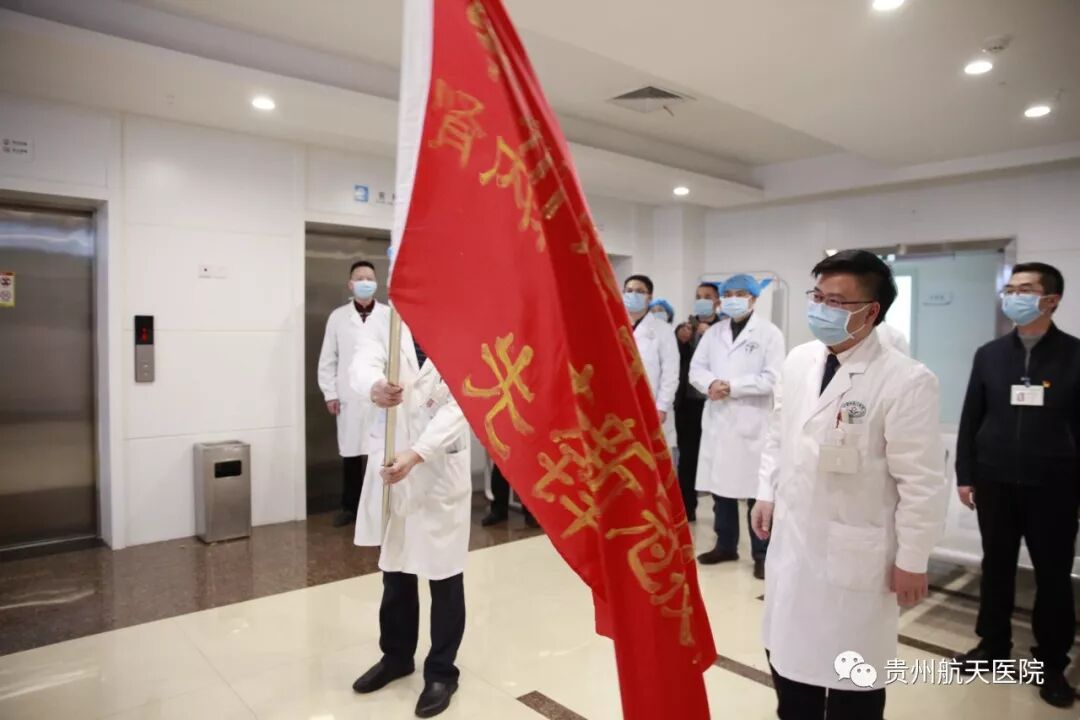 医院院长冯春林向肾内科授予了“贵州航天医院肾内科抗击新冠疫情先锋队”队旗。