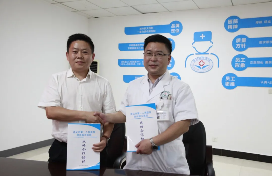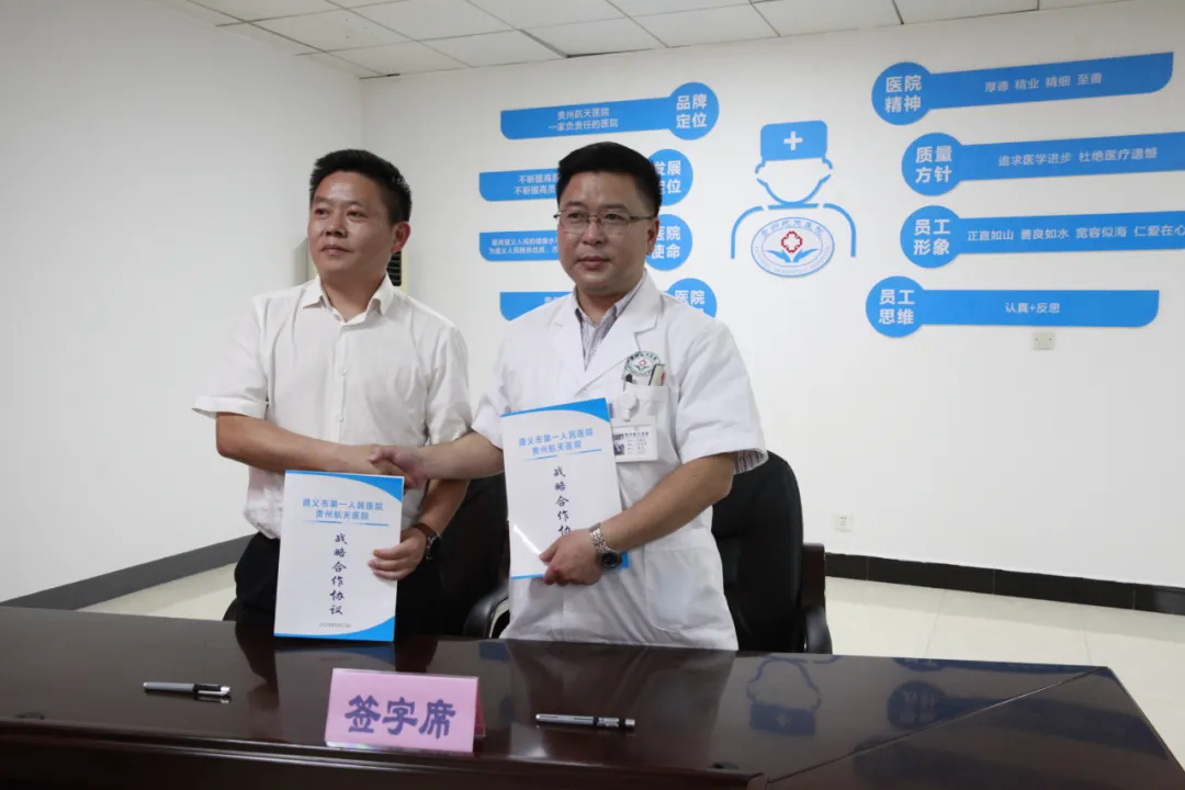 5月22日,遵义市第一人民医院与贵州航天医院举行战略合作签约仪式。两院领导班子成员出席会议,两院战略合作旨在“互惠、互利、稳定、恒久、高效、优质”的合作精神,共同就医院管理、医疗技术、人才培养、学科建设、科研教学等领域开展合作,结成深度战略合作伙伴关系。