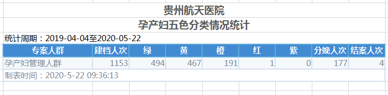 截止2020.5.22日,累计纳入孕周管理产妇1153人,累计完成分娩177人,结案4人次。
