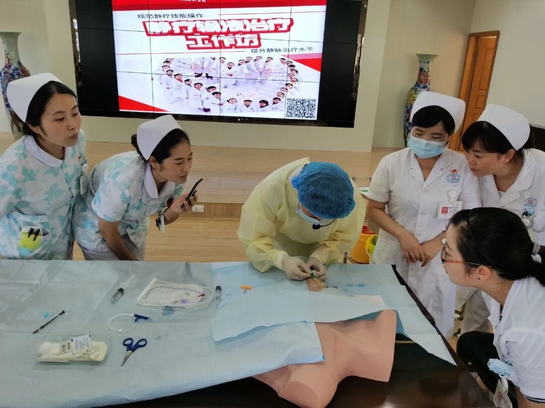 为进一步规范静疗技能操作,提升静脉输液治疗水平,保证优质服务内涵,保障患者医疗安全。7月14日,我院护理部开展“静脉输液治疗”工作坊活动,各科室护士长及护理技能操作骨干、院静疗小组成员、护理质控办成员等60余人参加。
