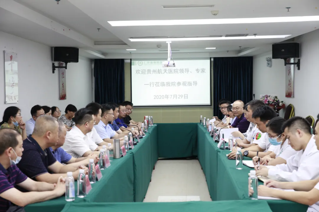 7月29日,贵州航天医院院长冯春林、副院长张伟德携专家20余人赴仁怀新朝阳医院调研交流,仁怀新朝阳医院院长吴刚、执行院长陈仕丽、副院长陈琦及相关科室负责人陪同。相继参观了急诊科、影像科、检验科、中医康复一科、优质病房、健康管理中心、骨科、普外科、泌尿外科等科室,随后在5楼会议室召开交流座谈会。
