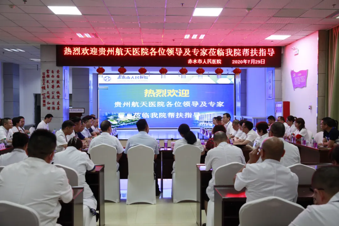 为推动贵州健康扶贫医疗卫生对口帮扶工作持续深入开展,提高贫困县县级医院的医疗服务能力和水平,使群众就近得到较高水平的基本医疗服务,缓解群众看病难问题。7月29日上午,贵州航天医院院长冯春林、副院长张伟德携临床专家20余人赴赤水市人民医院开展“新长征·新起点”大型联合义诊活动。