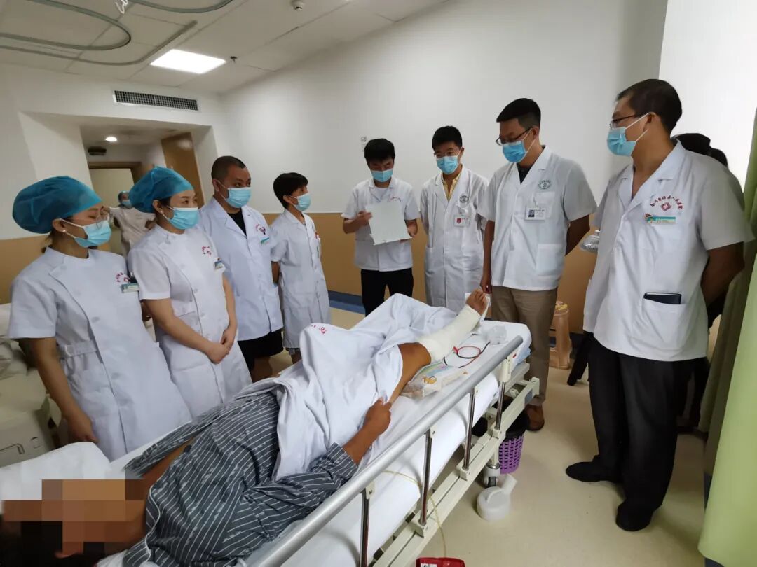 上海六院帮扶专家(我院骨一科主任)薛剑锋博士 教学查房指导踝关节术后病人康复会诊现场
