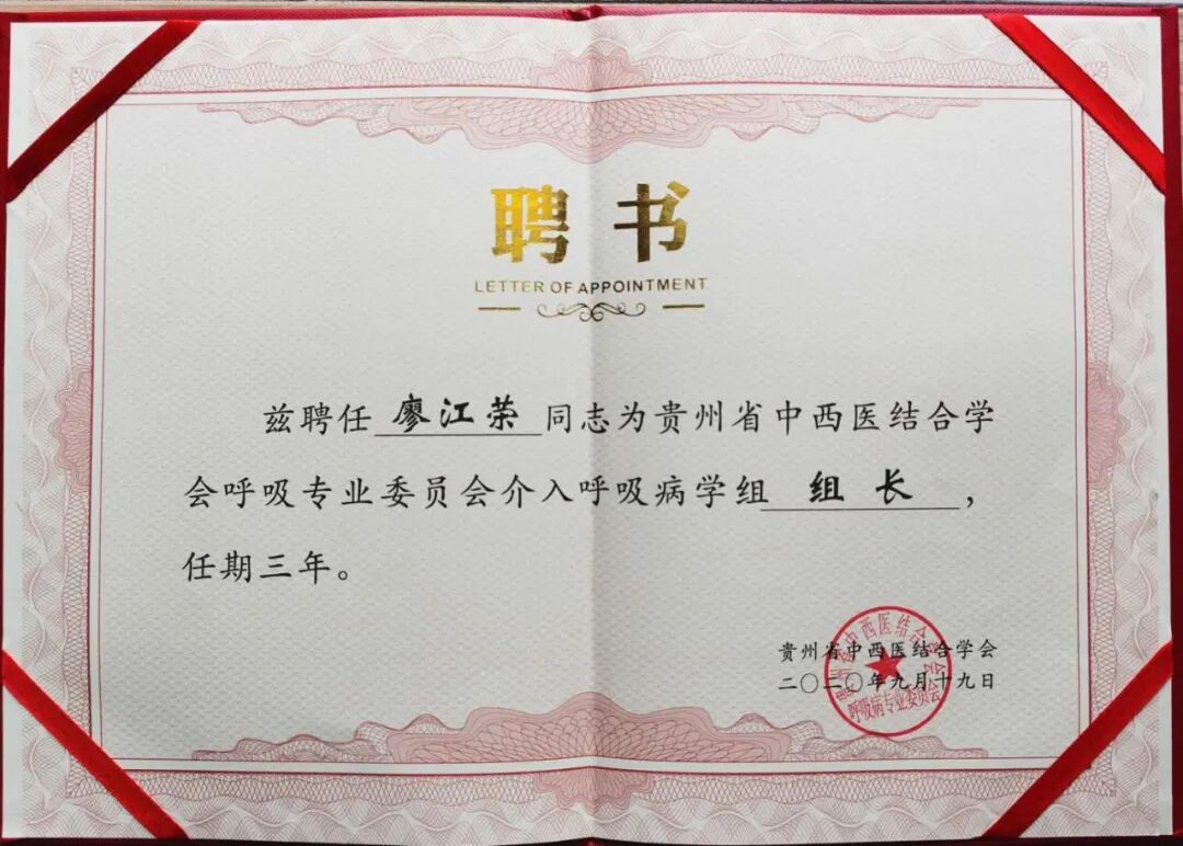 会议产生了贵州省中西医结合学会呼吸专委会介入呼吸病学组,学组由葛正行、叶贤伟担任学组名誉组长,我院呼吸与危重症医学科主任廖江荣当选首届学组组长。学组成员单位将近七十家,覆盖省内各地州市。