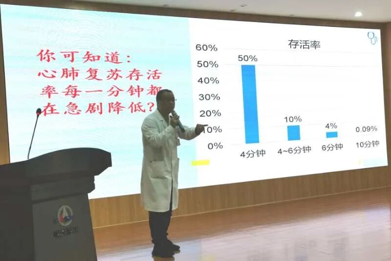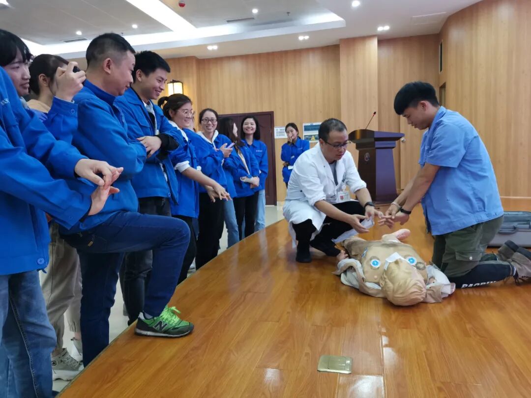 本次讲座由我院急诊科主治医师陈琪凭借多年的急诊科工作经验,用生动的语言和贴近生活的实例介绍了心肺复苏术和院前创伤急救基本技术。重点讲述了CPR现场紧急救护知识(如人工呼吸、胸外按压、开放气道、“CPR假人”模拟演示)。通过现场演示,让航天新力职工更加直观的学习了CPR。讲座结束后,陈琪组织现场人员在“假人”身上进行心肺复苏的基本操作。