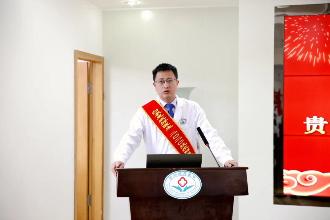 医院院长冯春林在大会上致辞,他表示,新冠疫情爆发后,习近平总书记亲自安排、亲自指挥、亲自部署,党中央、国务院统一号令,要打一场抗击新冠疫情的人民战争,全国各地医务人员积极响应,白衣执甲,逆行出征,践行了医者仁心、大爱无疆的崇高精神。我院的广大医务人员、干部职工纷纷参加抗击新冠疫情的斗争,在打好本院保卫战基础上,主动请缨,驰援湖北鄂州、贵阳将军山、遵义小汤山,取得了抗击新冠疫情的重大成果,充分彰显了我院医护人员的担当精神。他指出,实践证明航天医院医务人员是一支敢打必胜的优秀队伍,希望全体干部职工以他们为榜样,践行、发扬伟大抗疫精神,并将其融入医院未来的建设工作中。他希望,全体干部职工要落实好习近平总书记“毫不放松抓好秋冬季疫情防控,坚决夺取抗击新冠疫情全面胜利”的要求,切实抓好秋冬季疫情防控工作。