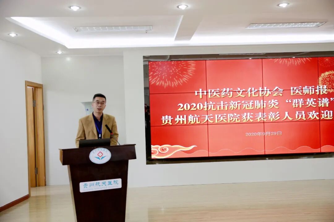 9月29日,我院召开中国医药卫生文化协会和《医师报》2020 抗击新冠肺炎“群英谱”贵州航天医院获表彰人员欢迎大会,医院全体领导班子成员、中层干部、护士长以及主任助理等参加会议。会议由医院党委副书记、纪委书记、工会主席闫璞主持。