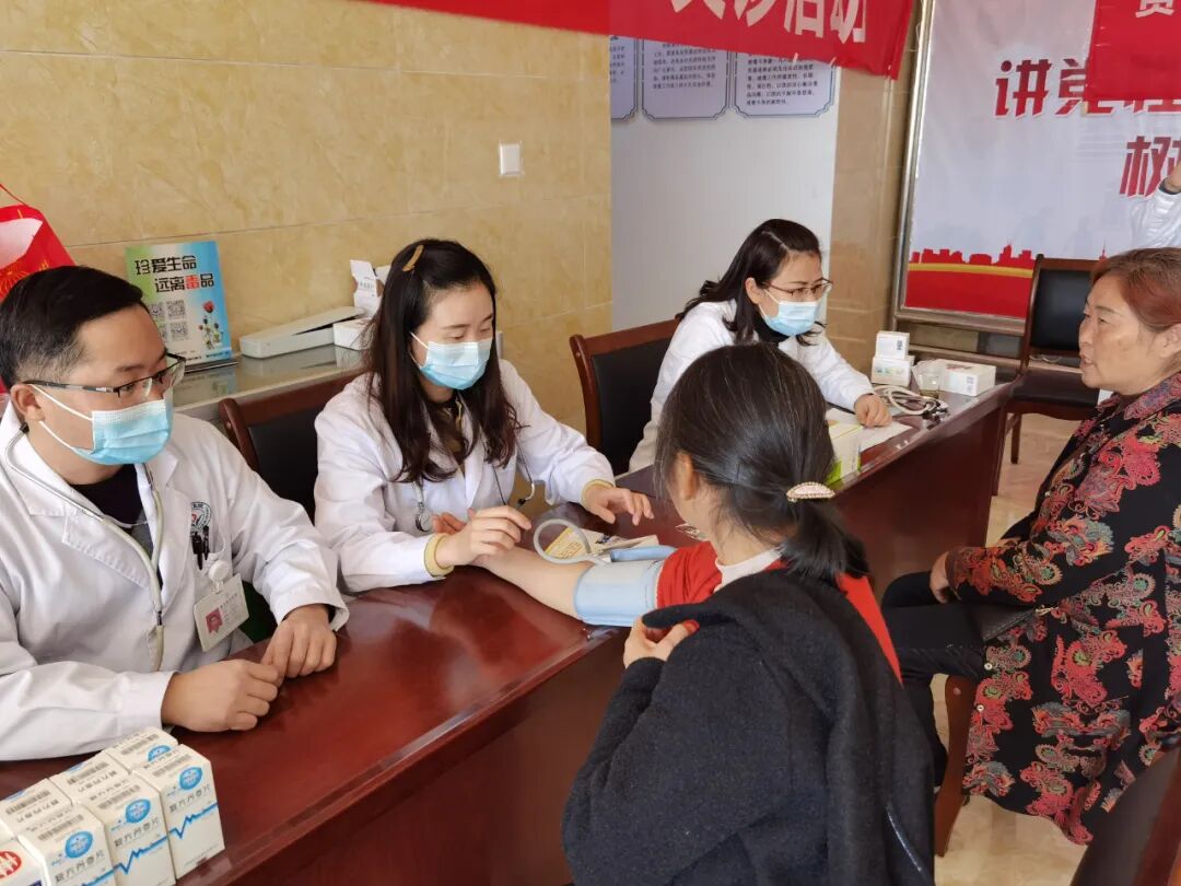 我院义诊健康小分队在红花岗区南关街道金华村委会设点,医疗队员们为社区居民开展免费血压测量、血糖测量、围产保健咨询、内外科咨询检查等项目,获得了周边群众的一致好评。