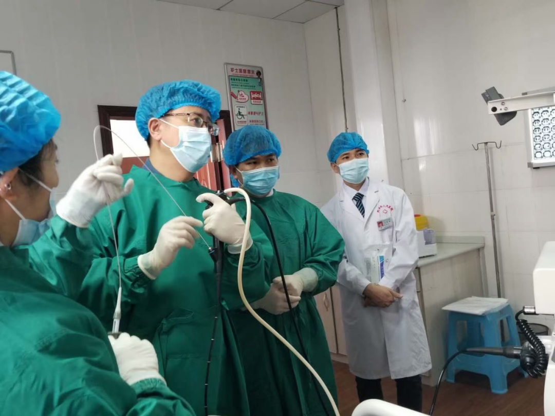 授牌结束以后,廖江荣主任一行亲临科室进行现场支气管镜操作演示及专业知识的培训。