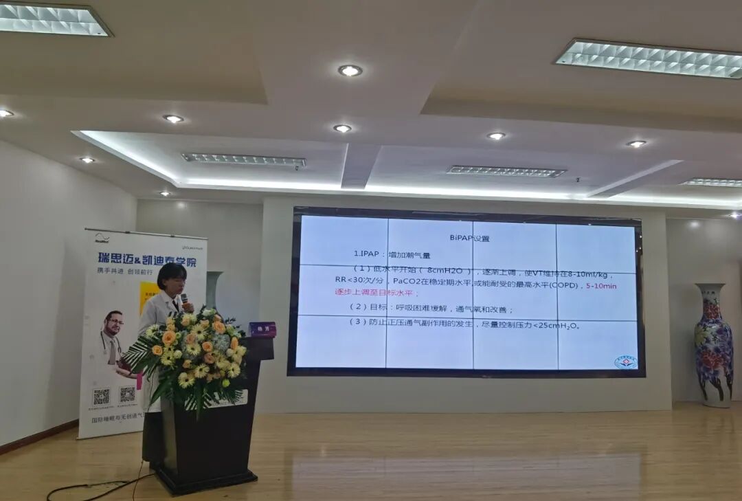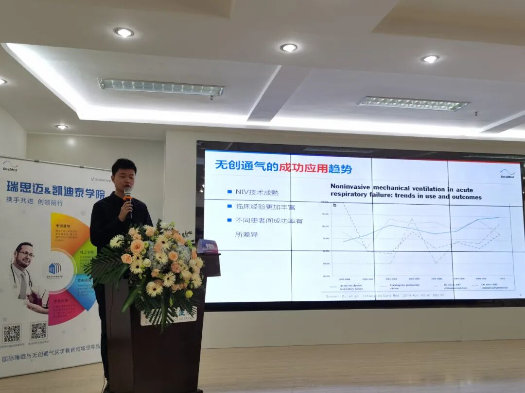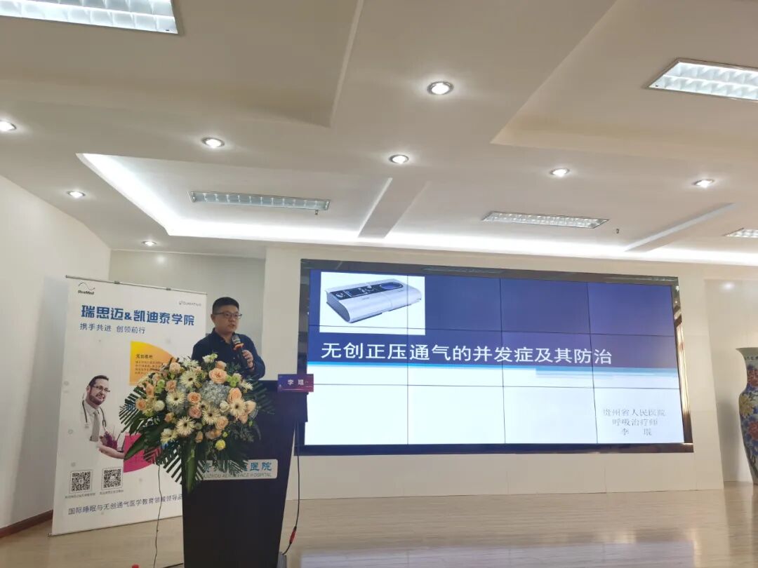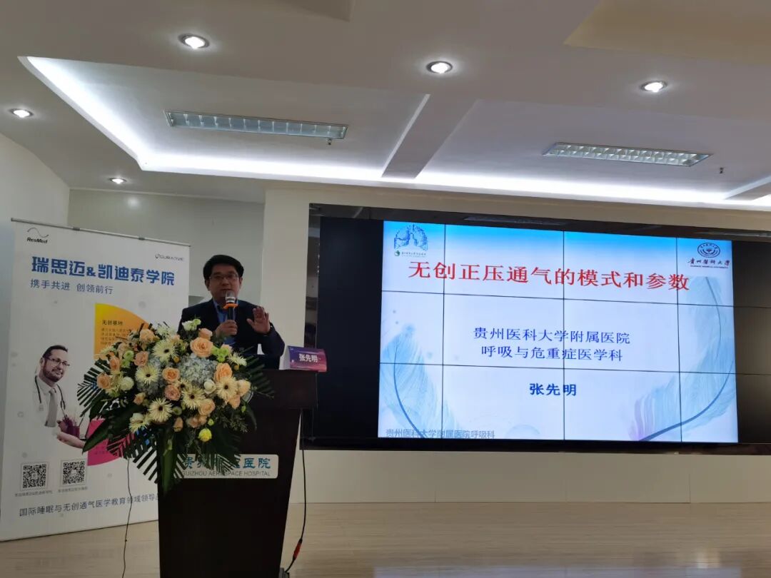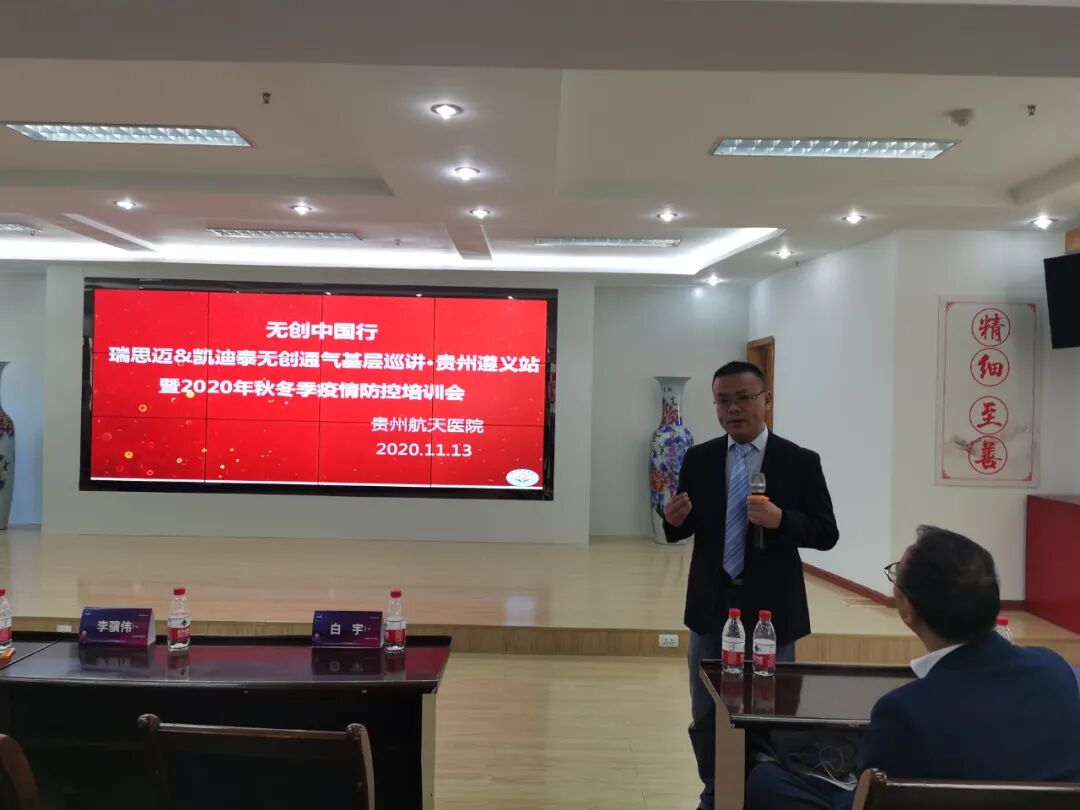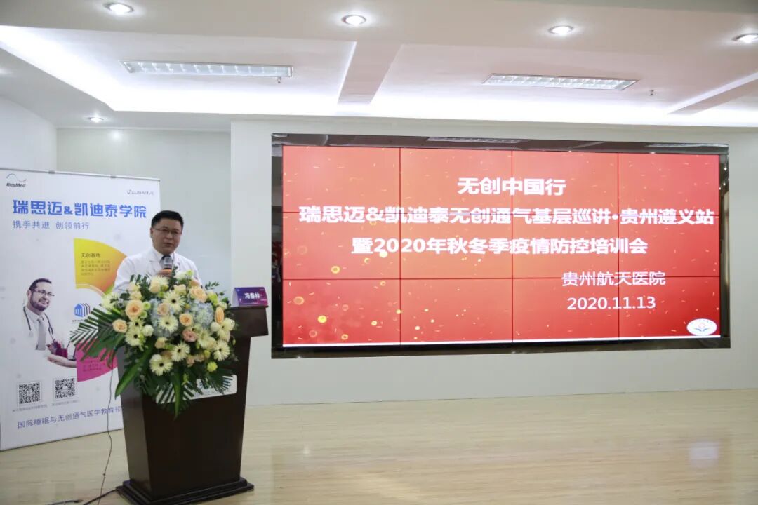 贵州航天医院院长冯春林致辞,表示希望大家珍惜此次培训机会,学有所能,学有所用,使我们基层医疗在无创通气技术方面能够得到提升,同时也为冬季疫情防控做好充分的准备,最后感谢瑞思迈迪泰学院对我院的支持和关心。