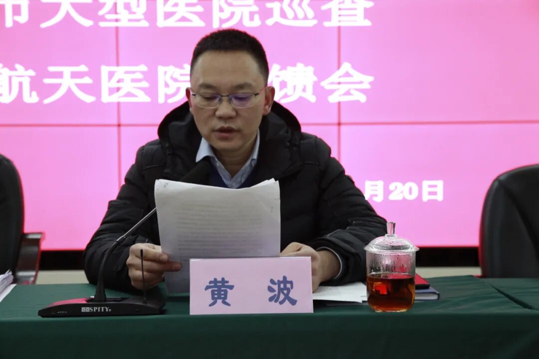 反馈会上,黄波反馈了在巡查过程中发现的航天医院在公立医院党的建设、行风建设、运营管理等方面工作亮点,以及在以上三方面存在的问题和不足,并逐条提出了整改建议。