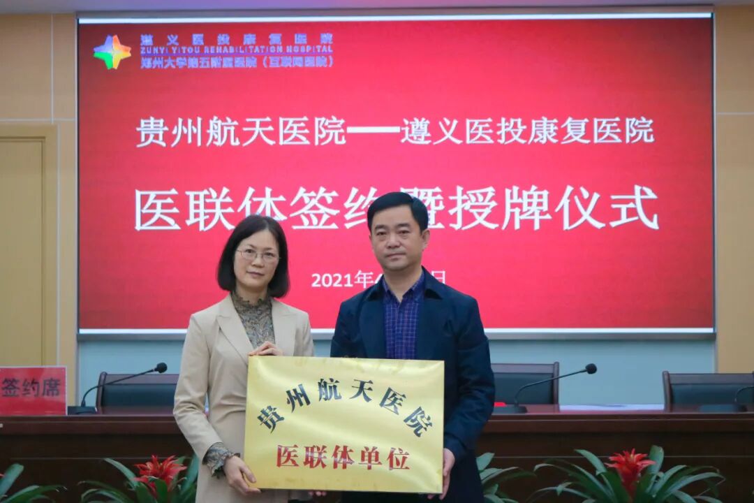 4月26日,贵州航天医院与遵义医投康复医院举行医联体、专科联盟签约暨授牌仪式,双方主要领导、相关科室负责人参加仪式。