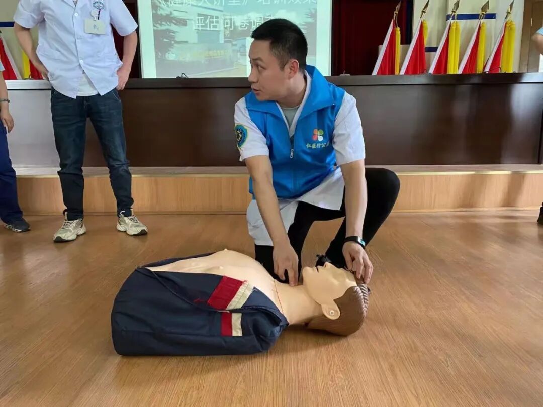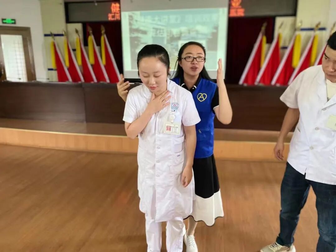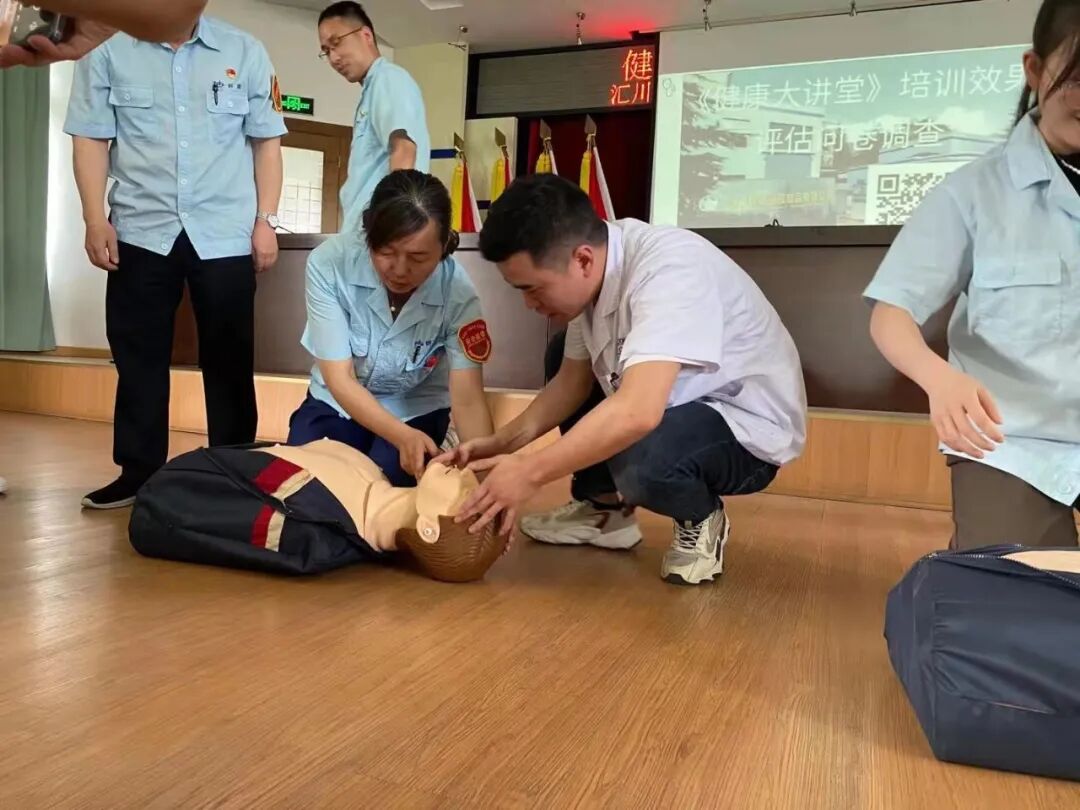健康宣讲会上,我院急诊科负责人彭亮讲解心肺复苏的操作手法,护师汪燕讲解成人和小儿海姆立克急救法的操作示范,同时志愿者们现场用道具模拟演示,对厂员职工进行手把手指导,详细分解操作的动作要领,向职工们讲解在工作期间遇到突发情况时的应急处理方法和现场急救知识。