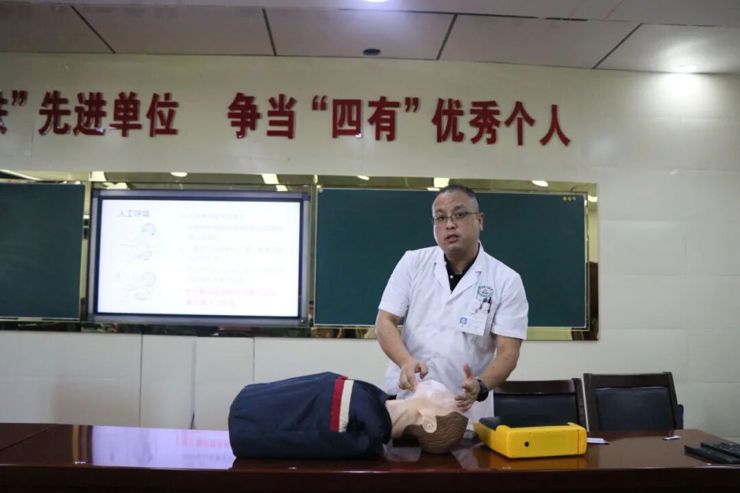 活动中,骨科医师耿攀就《创伤急救》内容为官兵们集中授课,针对日常训练和执行任务中可能出现的急救处理做了详细讲解。医务部副主任医师陈琪讲解了《心肺复苏术》的相关知识和操作规范,并做现场演示,培训结束后官兵们进行了心肺复苏模拟练习。