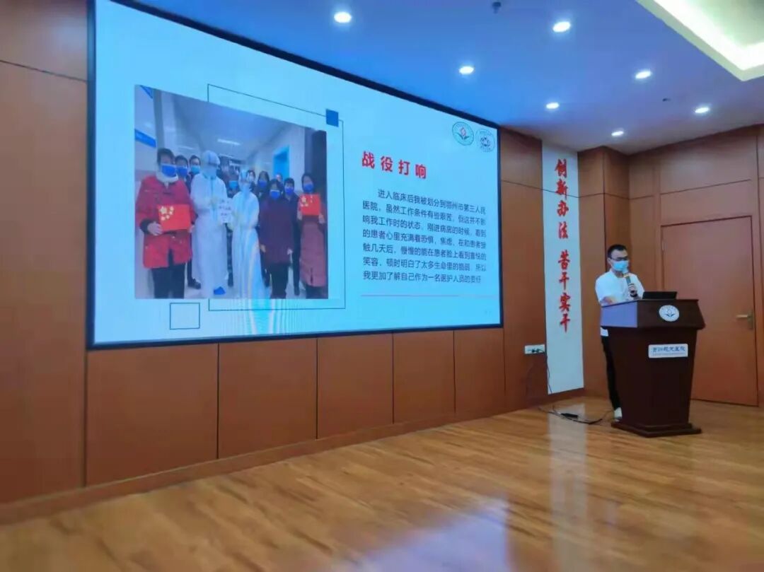 重症医学科援鄂护师危灿灿从求学求职之路、鄂州支援的亲身感受、职业发展规划、职业认同感等方面的与大家分享经历和感想。他坚信要做好护理工作,就要脚踏实地,积极参与医院各项教学和培训工作,不断增强自身理论知识,夯实技术水平,为医院护理工作贡献自己的一份力量。
