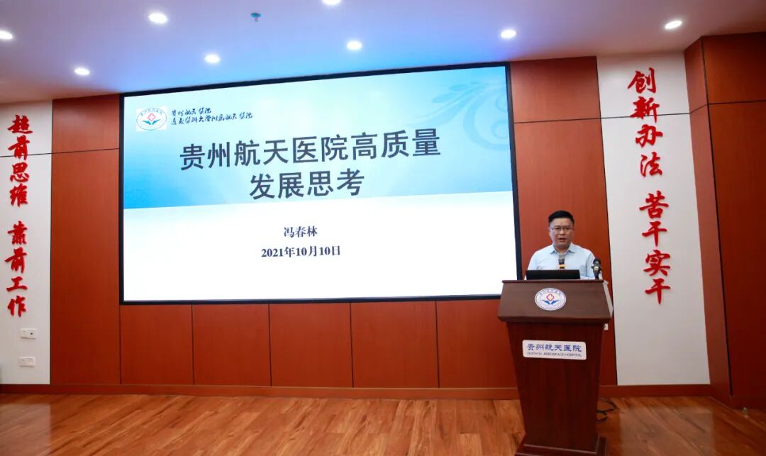 贵州航天医院院长冯春林以《贵州航天医院高质量发展思考》为题,从聚焦公立医院高质量发展目标;强化医院历史自信;构筑医院文化,营造以院为家氛围;完善基础,更新设备;优化就医流程,改善医疗服务;合纵连横推进医院发展;强化学科能力建设等十一个方面的内容进行详细介绍。