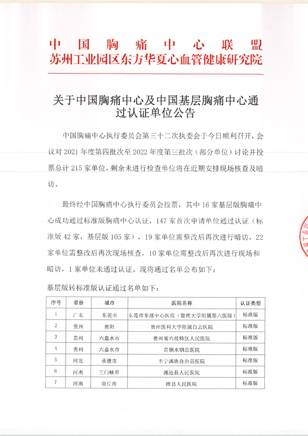 4月7日,中国胸痛中心执行委员会第三十二执委会对2021年度第四批次至2022年度第三批次申报国家级胸痛中心单位进行讨论并投票,最终经过中国胸痛中心执行委员投票决定,贵州航天医院胸痛中心通过中国胸痛中心(基层版)认证!