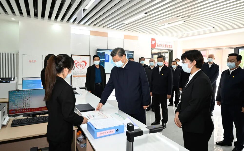 5月10日,中共中央总书记、国家主席、中央军委主席习近平在河北省雄安新区考察,并主持召开高标准高质量推进雄安新区建设座谈会。这是10日上午,习近平在容东片区南文营社区党群服务中心考察。新华社记者 李学仁 摄