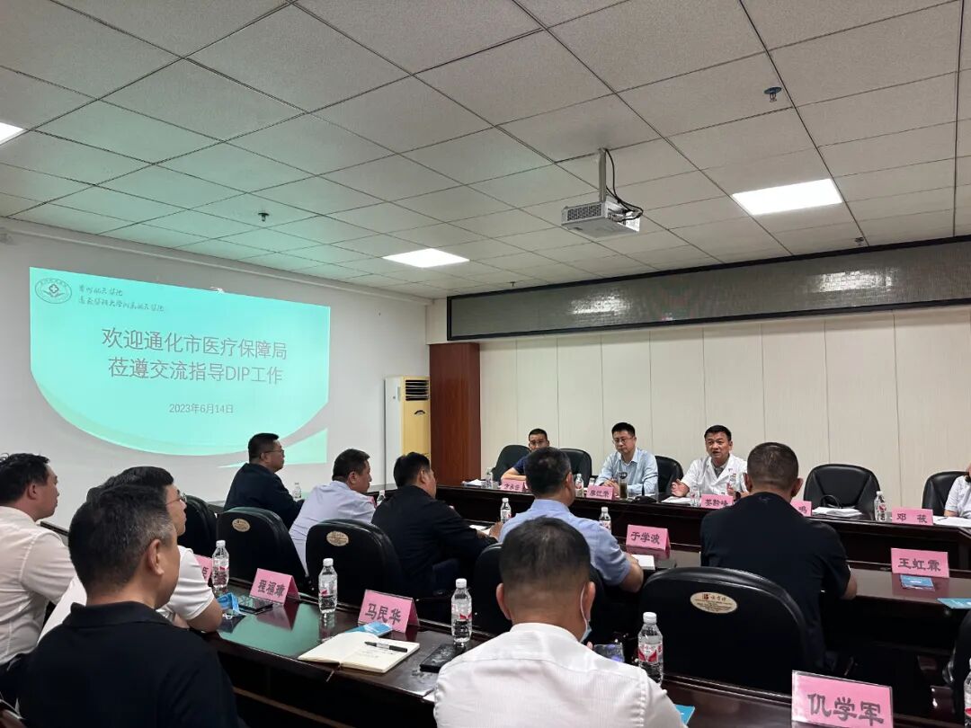 6月14日,吉林省通化市医疗保障局党组书记、局长于学波一行12人来我院实地调研DIP支付方式改革、医疗机构管理、信息系统建设等工作经验和具体做法,遵义市DIP专班成员,医院党委副书记、院长姜黔峰,副院长廖江荣及相关科室负责人参与调研交流会。