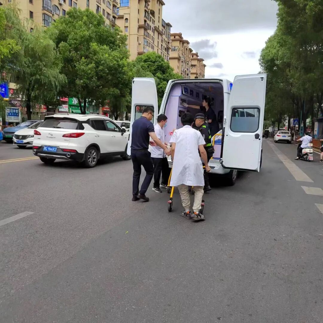 在120救护车到达后,他们告知了120医护人员患者的伤情,并与警察、120医护人员一起把患者安全地抬送至车上,他们才安心离开。
