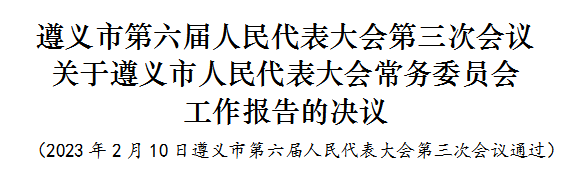 遵义市第六届人民代表大会第三次会议听取和审议了市长黄伟所作的政府工作报告。会议高度评价过去一年我市经济社会发展取得的成绩,充分肯定市人民政府过去一年的工作,同意报告提出的2023年主要目标任务和重点工作,决定批准这个报告。