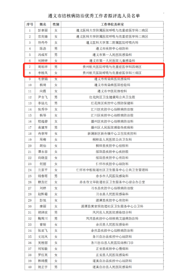 【航医喜报】我院李桂凤、周裕祥荣获“遵义市结核病防治优秀工作者”称号