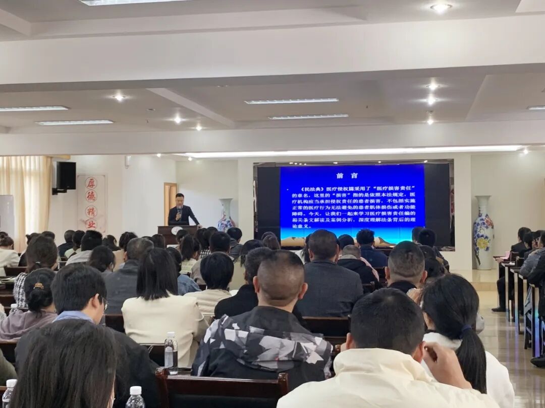 航医新闻 遵义市第二城市医疗集团 总院贵州航天医院 承办 2024年汇川区医疗纠纷 预防和处置业务培训会 3月28日,由汇川区卫生健康局主办,遵义市第二城市医疗集团总院贵州航天医院承办2024年汇川区医疗纠纷预防和处置业务培训会圆满举行,来自汇川区二级以上医疗机构单位、各民营医疗机构及乡镇卫生院和社区卫生服务中心相关负责人近150余名参加培训,会议由贵州航天医院医务部负责人彭亮主持。 贵州航天医院党委副书记、院长姜黔峰,汇川区卫健局副局长陈全国,贵州省医评委专家朱栋,贵州省(医责)医评委专家周东平,以及遵义医科大学附属医院、中汇国际医责险服务专员出席会议。 贵州航天医院党委副书记、院长姜黔峰致辞,他指出医疗质量是医院生存和发展的生命线,防范与减少医疗纠纷的发生已成为各医院面临的重要课题。倡议各医疗机构要制定并严格落实各项规章制度,切实提高为民服务水平、建立和完善医患沟通制度、减少和杜绝医疗差错、医疗事故发生。 汇川区卫健局副局长陈全国作培训会开班前讲话,他指出避免医疗纠纷就要严把质量关,以人为本,增强服务意识、提高服务能力、改善服务质量,力求从源头上避免或减少医患纠纷发生。同时要及时受理和处理患者投诉,畅通医患沟通,构建和谐的医患关系。 培训会现场 遵义市元璋律师事务所律师朱栋讲解 《民法典》医疗侵权篇详解及典型案例解析 遵义医科大学附属医院法规科科长曾凡涛讲解 《探讨如何在新形势下运用“三调解一保险” 机制快速处理医疗纠纷》 贵州省(医责)医评委专家周东平讲解 《医疗风险管理与纠纷处理技巧》 中汇国际医责险服务专员曾广鸿解读 《医责险新的服务模式》 汇川区卫健局医政科科长陈慧对本次培训作总结发言 通过此次培训,增强了全区干部职工的医疗安全和医疗事故防范意识,加深了对医疗相关法律法规的认识,使医院医疗纠纷预防处理工作向更加严谨化、合理化方向迈进,为构建和谐医疗环境提供有力保障。 推荐阅读 ,关注我们 贵州航天医院简介 贵州航天医院位于红城遵义市中心地段大连路615号,历经五十余年的峥嵘岁月,已发展为集医疗、急救、预防、保健、科研、教学为一体的市属三级甲等综合医院。医院始于三线建设,由原〇六一基地3417、3427医院合并而成,2019年移交遵义市人民政府管理。是遵义医科大学附属航天医院、遵义市第二城市医疗集团总院。 医院占地面积4万平方米,总建筑面积10.2万平方米,编制床位1200张,设有临床、医技、行政职能科室共60个。现有职工1143人,国务院特殊津贴专家2人,二级教授1人,三级教授1人,博士、硕士研究生导师6人,贵州省千层次人才1人,遵义市15851二层次人才2人,博士、硕士95人(含在读),高级职称以上188人。 医院现有2个国家卫健委能力建设和继续教育建设中心〔肿瘤微创介入(肺癌方向)和神经外科〕,1个省级重点学科(呼吸与危重症医学科),6个省级重点专科(呼吸与危重症医学科、神经内科、骨科、泌尿外科、急诊科、消化内科),2个市级重点学科,10个市级重点专科。是亚洲冷冻治疗学会常务理事单位、中国人体健康科技促进会首批呼吸介入技术培训基地、遵义市呼吸内科专业医疗质量控制中心、遵义市呼吸疾病临床医学中心、遵义市骨科临床医学中心、遵义市肺癌与肺小结节早期诊断精准医学重点实验室、遵义市城市检测基地。 呼吸与危重症医学科开展的肺部血管介入治疗,经纤支镜下冷冻、氩氦刀、高频电刀治疗良恶性肿瘤,使我院肺部疾病诊疗技术迈入国内先进水平。泌尿外科开展的腹腔镜下膀胱癌和前列腺癌根治术走在贵州省前列。消化内科在脂肪肝、肝纤维化、肝硬化无创诊断技术和胃肠动力疾病全程规范管理达到国内先进水平。医学检验科结核病诊断技术水平已居于国内前列。心血管内科特色开展冠脉复杂病变、结构性心脏病等优势介入手术,神经内科、骨科、急诊科、心胸外科等重点专科诊疗水平已居于全市前列。近年来,医院科研教学能力显著提升,三年内共承担省科技厅、省卫健委等科研项目73项,发表核心期刊11篇,SCI 6篇,省级259篇。 医院以遵义市第二城市医疗集团为依托,按照“一院多区”模式,实现双向转诊汇川区域全覆盖,着力打造“心电一张网”、继发性高血压筛查等项目,以慢性病、多发病为切入点,推动优质医疗资源下沉。聚焦公立医院改革与高质量示范项目发展,以呼吸与危重症医学科等优势学科为引领,积极推进医联体、专科联盟建设,带动区域内基层技术服务能力提升。