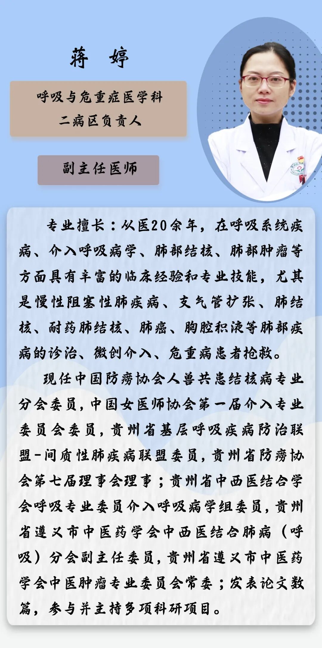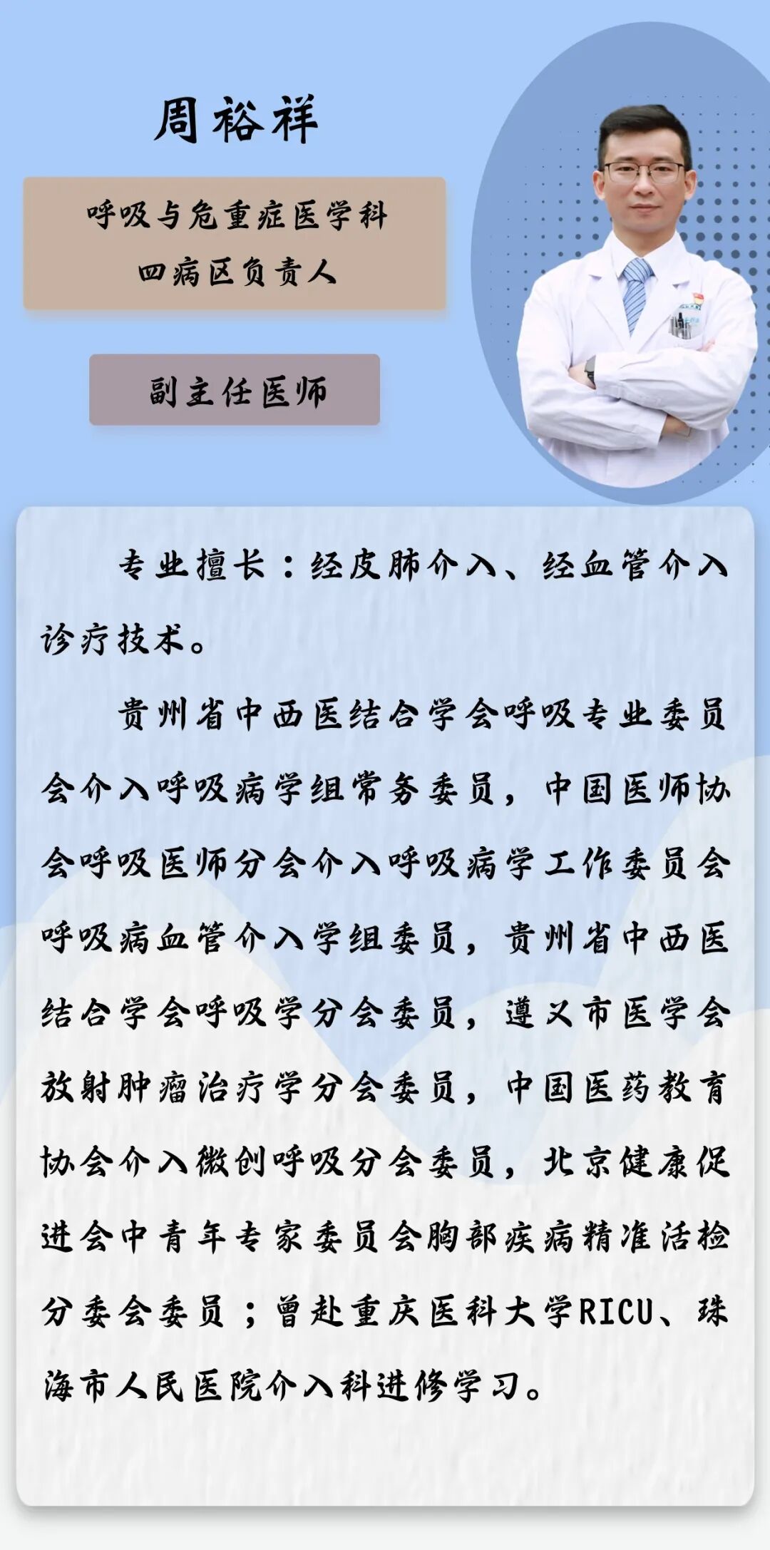贵州航天医院呼吸与危重症医学科是省内呼吸疾病治疗规模最大,诊疗项目最全的呼吸疾病品牌科室。是贵州省医学重点学科、临床医学重点专科建设单位,遵义市首批呼吸重点学科、重点专科建设单位。是国家卫健委能力建设和继续教育肿瘤微创介入建设中心、贵州省县级医院微创介入培训中心、遵义市呼吸疾病临床医学中心。是国家呼吸医疗质量控制与管理哨点医院、遵义市呼吸内科专业医疗质量控制中心。是中国医药教育协会介入微创呼吸分会呼吸介入技术培训中心单位;国家卫健委海医会呼吸分会ROSE专委会“诊断性介入肺脏病学快速现场评价”培训基地;中国肺癌防治联盟“贵州航天医院肺结节诊治”分中心,中国人体健康科技促进会呼吸介入技术培训基地,贵州省中西医结合会呼吸学分会呼吸介入专委会主委单位。