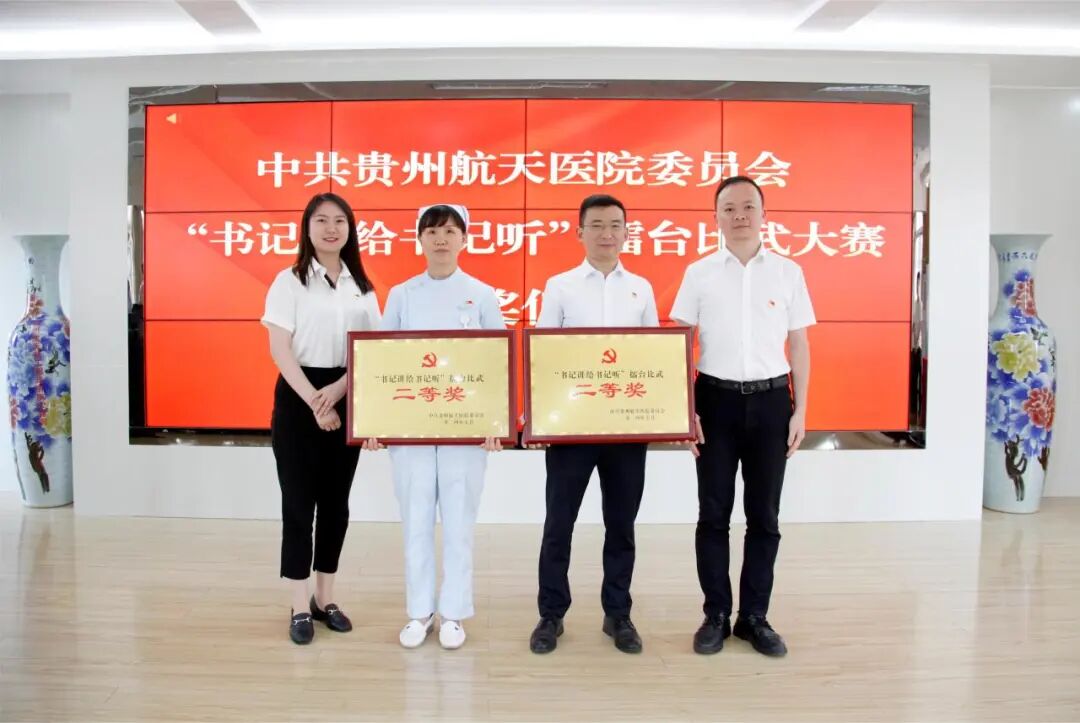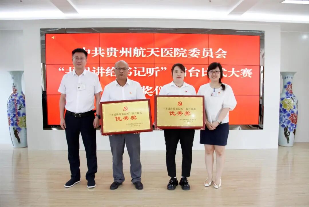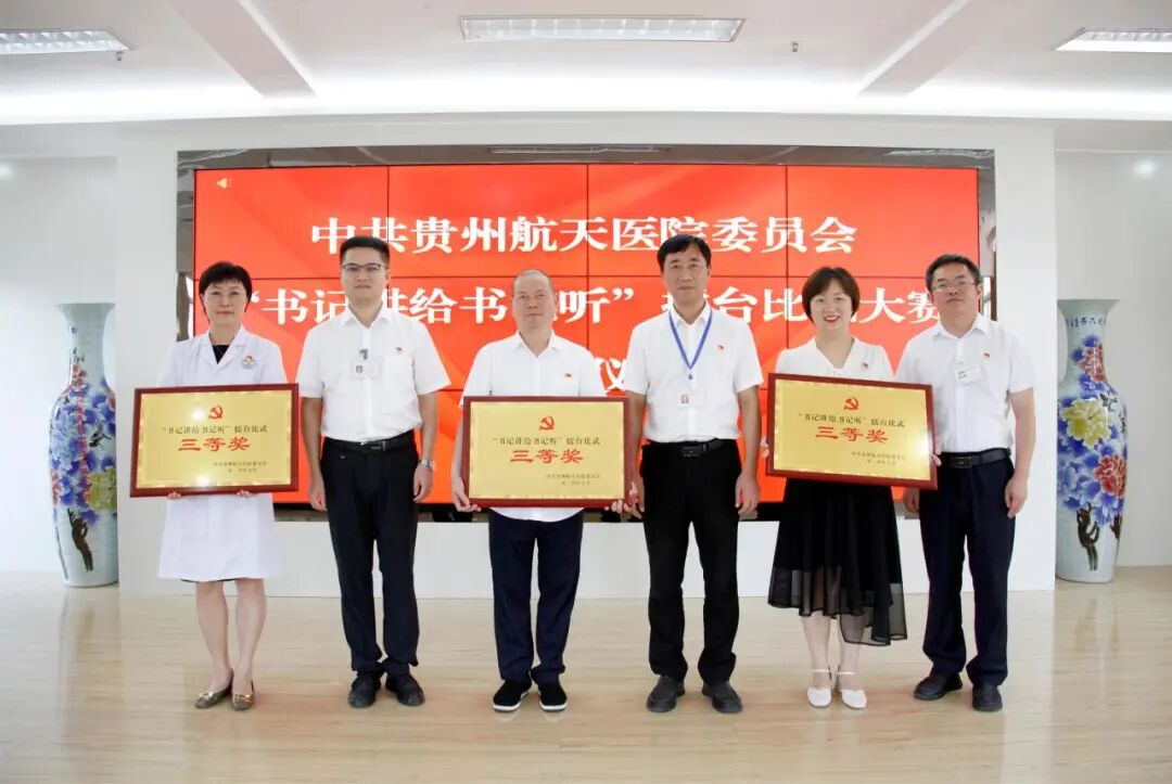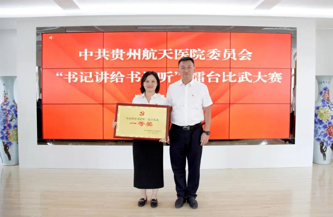 为深入学习贯彻习近平新时代中国特色社会主义思想,切实提升党支部书记抓党建工作的能力,增强履职本领,推动医院党建与业务深度融合,进一步营造“比、学、赶、超”的良好氛围,7月25日,贵州航天医院组织开展“书记讲给书记听”擂台比武大赛。市委组织部、市卫生健康局相关科室负责同志,贵州航天医院党政领导班子成员、各党支部书记、各科室负责人参加。 贵州航天医院8名党支部书记轮番上台,同台“比武”、现场“过招”,展示了所在支部推动“党建+业务”深度融合、科室高质量发展的“拿手绝活”。 ☆ • ☆ 贵州航天医院党委副书记、院长姜黔峰指出,医院要强化政治建设不动摇,始终在思想上政治上行动上同以习近平同志为核心的党中央保持高度一致;要强化思想建设不放松,努力锻造政治合格、执行纪律合格、发挥作用合格的党员队伍;要强化组织建设不松劲,加强“名支书工作室”等先进典型培育,深入开展“一支一特”品牌创建,切实把组织体系嵌入工作体系,推动组织工作与业务融合;要强化作风建设不懈怠,坚持以患者需求为目标,深入开展“改善就医感受、提升患者体验”主题活动,不断提升群众看病就医的满意度;要强化纪律建设不手软,持续深化党纪学习教育,常态化加强《条例》学习,运用好执纪监督问责的“四种形态”,引导广大党员、干部知敬畏、存戒惧、守底线。 ☆ • ☆ 经过激烈角逐,严格评分,擂台比武大赛共决出一等奖1名、二等奖2名,三等奖3名,优秀奖2名。 一等奖 二等奖 三等奖 优秀奖 ☆ • ☆ 通过擂台比武的方式,贵州航天医院各党支部在互学互鉴中找到了差距、取得了真经、明确了方向,也锻造了一批在落实党建引领、改善患者就医体验、为民服务等方面打头阵、做表率的“领头雁”,让党建工作的实招硬招妙招成为了推动医院高质量发展的好招。 End