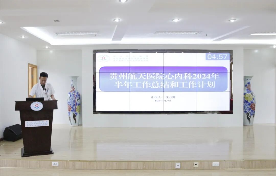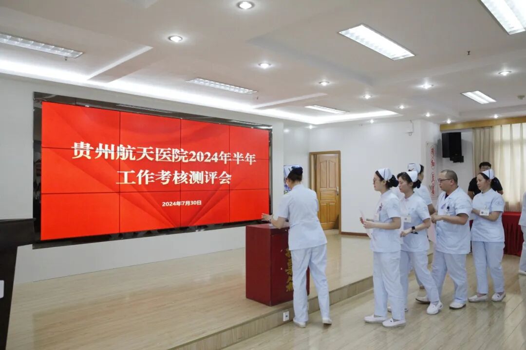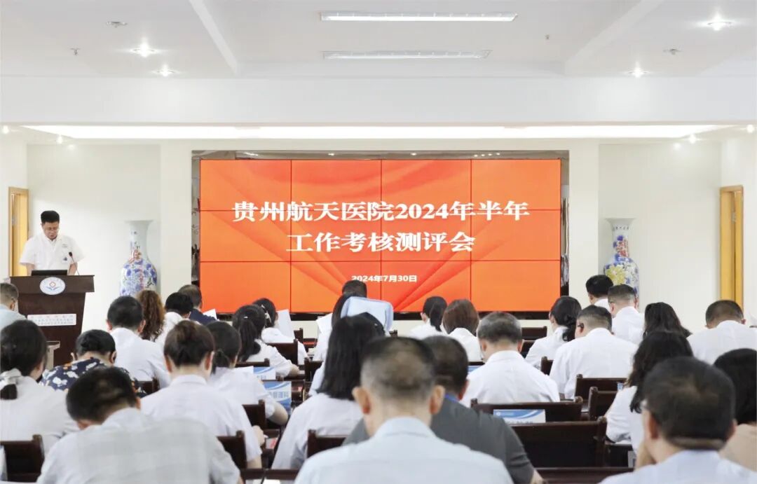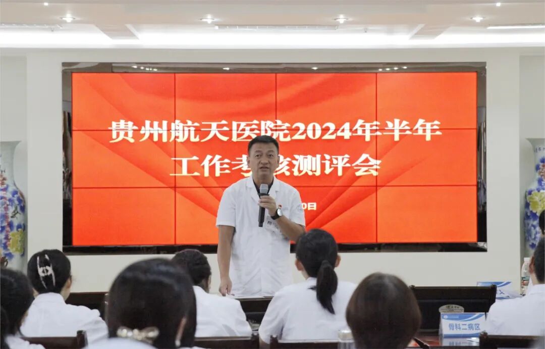 为系统总结医院2024年上半年工作,全面谋划部署下半年工作,考评各部门、各科室履责情况,查找、解决工作中存在的问题和不足,2024年7月30日,贵州航天医院召开半年工作考核测评会,医院党政领导班子成员,各临床医技科室负责人、护士长,各行政职能部门负责人参会。会议由贵州航天医院副院长廖江荣主持。 汇报环节 本次考核测评会选取了22个临床医技科室和行政职能部门,对上半年工作完成情况、问题及不足、下一步计划进行了汇报。 左右滑动,查看更多 现场考核测评、投票 总结发言 贵州航天医院党委副书记、院长姜黔峰指出,各科室要借鉴优秀经验做法,强化科室运营管理,探索开设双门诊、专病门诊,进一步提升医疗质量、服务质量,并严把安全关,确保2024年度各项目标任务圆满完成;要充分发挥遵义市第二城市医疗集团、医联体、专科联盟等作用,切实落实分级诊疗,积极推动优质医疗下沉;要灵活运用宣传渠道,展现医院特色、优势医疗技术和优质服务,增强同公众的联系,树牢医院品牌形象。 半年工作考核测评会的召开,为医院下半年工作指明了方向、厘清了思路、明确了重点、鼓舞了士气。接下来,医院将聚焦全年重点工作任务,齐心协力,持续提升医疗技术水平和服务质量,为推动遵义市卫生健康事业高质量发展贡献更大的力量。 推荐阅读 贵州航天医院简介 贵州航天医院位于红城遵义市中心地段大连路615号,历经五十余年的峥嵘岁月,已发展为集医疗、急救、预防、保健、科研、教学为一体的市属三级甲等综合医院。医院始于三线建设,由原〇六一基地3417、3427医院合并而成,2019年移交遵义市人民政府管理。是遵义医科大学附属航天医院、遵义市第二城市医疗集团总院。 医院占地面积4万平方米,总建筑面积10.2万平方米,编制床位1200张,设有临床、医技、行政职能科室共60个。现有职工1174人,国务院特殊津贴专家2人,二级教授1人,三级教授1人,博士、硕士研究生导师6人,贵州省千层次人才1人,遵义市15851二层次人才2人,博士、硕士112人(含在读),高级职称以上214人。 医院现有2个国家卫健委能力建设和继续教育建设中心〔肿瘤微创介入(肺癌方向)和神经外科〕,1个省级重点学科(呼吸与危重症医学科),6个省级重点专科(呼吸与危重症医学科、神经内科、骨科、泌尿外科、急诊科、消化内科),2个市级重点学科,10个市级重点专科。是亚洲冷冻治疗学会常务理事单位、中国人体健康科技促进会首批呼吸介入技术培训基地、遵义市呼吸内科专业医疗质量控制中心、遵义市呼吸疾病临床医学中心、遵义市骨科临床医学中心、遵义市肺癌与肺小结节早期诊断精准医学重点实验室、遵义市城市检测基地。 呼吸与危重症医学科开展的肺部血管介入治疗,经纤支镜下冷冻、氩氦刀、高频电刀治疗良恶性肿瘤,使我院肺部疾病诊疗技术迈入国内先进水平。泌尿外科开展的腹腔镜下膀胱癌和前列腺癌根治术走在贵州省前列。消化内科在脂肪肝、肝纤维化、肝硬化无创诊断技术和胃肠动力疾病全程规范管理达到国内先进水平。医学检验科结核病诊断技术水平已居于国内前列。心血管内科特色开展冠脉复杂病变、结构性心脏病等优势介入手术,神经内科、骨科、急诊科、心胸外科等重点专科诊疗水平已居于全市前列。近年来,医院科研教学能力显著提升,三年内共承担省科技厅、省卫健委等科研项目73项,发表核心期刊11篇,SCI 6篇,省级259篇。 医院以遵义市第二城市医疗集团为依托,按照“一院多区”模式,实现双向转诊汇川区域全覆盖,着力打造“心电一张网”、继发性高血压筛查等项目,以慢性病、多发病为切入点,推动优质医疗资源下沉。聚焦公立医院改革与高质量发展示范项目,以呼吸与危重症医学科等优势学科为引领,积极推进医联体、专科联盟建设,带动区域内基层技术服务能力提升。 End