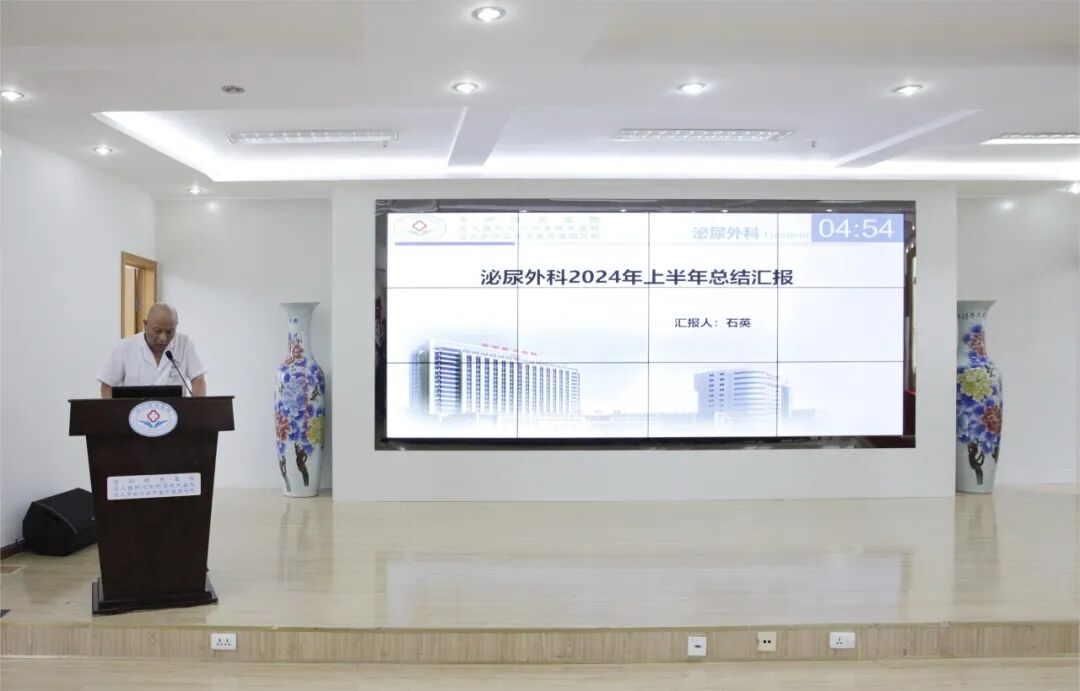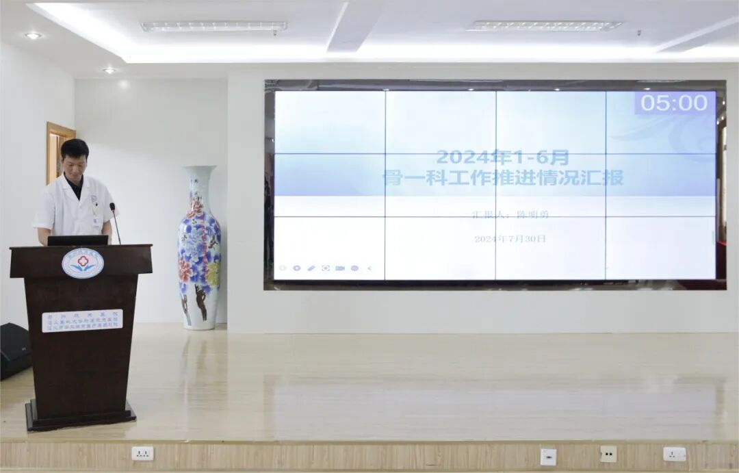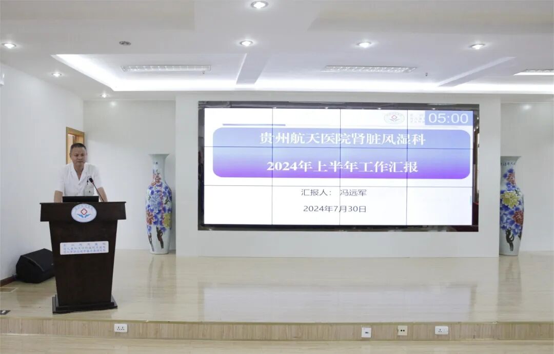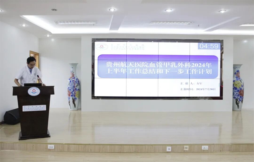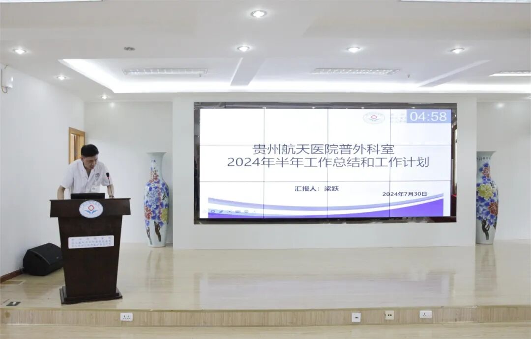 为系统总结医院2024年上半年工作,全面谋划部署下半年工作,考评各部门、各科室履责情况,查找、解决工作中存在的问题和不足,2024年7月30日,贵州航天医院召开半年工作考核测评会,医院党政领导班子成员,各临床医技科室负责人、护士长,各行政职能部门负责人参会。会议由贵州航天医院副院长廖江荣主持。 汇报环节 本次考核测评会选取了22个临床医技科室和行政职能部门,对上半年工作完成情况、问题及不足、下一步计划进行了汇报。 左右滑动,查看更多 现场考核测评、投票 总结发言 贵州航天医院党委副书记、院长姜黔峰指出,各科室要借鉴优秀经验做法,强化科室运营管理,探索开设双门诊、专病门诊,进一步提升医疗质量、服务质量,并严把安全关,确保2024年度各项目标任务圆满完成;要充分发挥遵义市第二城市医疗集团、医联体、专科联盟等作用,切实落实分级诊疗,积极推动优质医疗下沉;要灵活运用宣传渠道,展现医院特色、优势医疗技术和优质服务,增强同公众的联系,树牢医院品牌形象。 半年工作考核测评会的召开,为医院下半年工作指明了方向、厘清了思路、明确了重点、鼓舞了士气。接下来,医院将聚焦全年重点工作任务,齐心协力,持续提升医疗技术水平和服务质量,为推动遵义市卫生健康事业高质量发展贡献更大的力量。 推荐阅读 贵州航天医院简介 贵州航天医院位于红城遵义市中心地段大连路615号,历经五十余年的峥嵘岁月,已发展为集医疗、急救、预防、保健、科研、教学为一体的市属三级甲等综合医院。医院始于三线建设,由原〇六一基地3417、3427医院合并而成,2019年移交遵义市人民政府管理。是遵义医科大学附属航天医院、遵义市第二城市医疗集团总院。 医院占地面积4万平方米,总建筑面积10.2万平方米,编制床位1200张,设有临床、医技、行政职能科室共60个。现有职工1174人,国务院特殊津贴专家2人,二级教授1人,三级教授1人,博士、硕士研究生导师6人,贵州省千层次人才1人,遵义市15851二层次人才2人,博士、硕士112人(含在读),高级职称以上214人。 医院现有2个国家卫健委能力建设和继续教育建设中心〔肿瘤微创介入(肺癌方向)和神经外科〕,1个省级重点学科(呼吸与危重症医学科),6个省级重点专科(呼吸与危重症医学科、神经内科、骨科、泌尿外科、急诊科、消化内科),2个市级重点学科,10个市级重点专科。是亚洲冷冻治疗学会常务理事单位、中国人体健康科技促进会首批呼吸介入技术培训基地、遵义市呼吸内科专业医疗质量控制中心、遵义市呼吸疾病临床医学中心、遵义市骨科临床医学中心、遵义市肺癌与肺小结节早期诊断精准医学重点实验室、遵义市城市检测基地。 呼吸与危重症医学科开展的肺部血管介入治疗,经纤支镜下冷冻、氩氦刀、高频电刀治疗良恶性肿瘤,使我院肺部疾病诊疗技术迈入国内先进水平。泌尿外科开展的腹腔镜下膀胱癌和前列腺癌根治术走在贵州省前列。消化内科在脂肪肝、肝纤维化、肝硬化无创诊断技术和胃肠动力疾病全程规范管理达到国内先进水平。医学检验科结核病诊断技术水平已居于国内前列。心血管内科特色开展冠脉复杂病变、结构性心脏病等优势介入手术,神经内科、骨科、急诊科、心胸外科等重点专科诊疗水平已居于全市前列。近年来,医院科研教学能力显著提升,三年内共承担省科技厅、省卫健委等科研项目73项,发表核心期刊11篇,SCI 6篇,省级259篇。 医院以遵义市第二城市医疗集团为依托,按照“一院多区”模式,实现双向转诊汇川区域全覆盖,着力打造“心电一张网”、继发性高血压筛查等项目,以慢性病、多发病为切入点,推动优质医疗资源下沉。聚焦公立医院改革与高质量发展示范项目,以呼吸与危重症医学科等优势学科为引领,积极推进医联体、专科联盟建设,带动区域内基层技术服务能力提升。 End