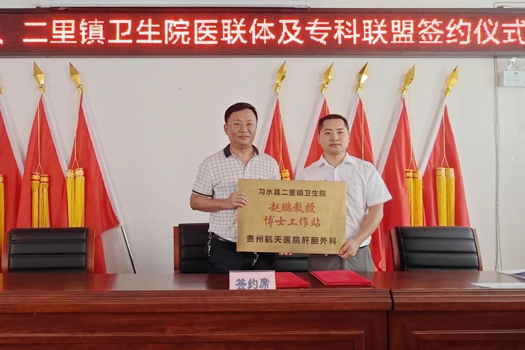 为持续推动巩固拓展脱贫攻坚成果同乡村振兴有效衔接,落实帮扶主体责任,顺利传好乡村振兴“接力棒”。8月27日,贵州航天医院党委副书记、院长姜黔峰,党委副书记孙琦一行带领我院新任驻村“第一书记”钟鸣前往习水县二里镇井坝村进行轮换交接。习水县二里镇党委书记罗升华主持座谈会。 左右滑动查看更多 会后,我院同二里镇卫生院签订医联体、专科联盟协议,并开展大型义诊活动,为当地群众提供健康咨询、指导用药、宣教等服务,进一步推动了我院优质医疗资源下沉基层,让当地居民在家门口就能享受到优质、便捷的医疗服务。 左右滑动查看更多 推荐阅读 1.【通知公告】贵州航天医院关于电子病历信息系统升级切换的公告 贵州航天医院简介 贵州航天医院位于红城遵义市中心地段大连路615号,历经五十余年的峥嵘岁月,已发展为集医疗、急救、预防、保健、科研、教学为一体的市属三级甲等综合医院。医院始于三线建设,由原〇六一基地3417、3427医院合并而成,2019年移交遵义市人民政府管理。是遵义医科大学附属航天医院、遵义市第二城市医疗集团总院。 医院占地面积4万平方米,总建筑面积10.2万平方米,编制床位1200张,设有临床、医技、行政职能科室共60个。现有职工1174人,国务院特殊津贴专家2人,二级教授1人,三级教授1人,博士、硕士研究生导师6人,贵州省千层次人才1人,遵义市15851二层次人才2人,博士、硕士112人(含在读),高级职称以上214人。 医院现有2个国家卫健委能力建设和继续教育建设中心〔肿瘤微创介入(肺癌方向)和神经外科〕,1个省级重点学科(呼吸与危重症医学科),6个省级重点专科(呼吸与危重症医学科、神经内科、骨科、泌尿外科、急诊科、消化内科),2个市级重点学科,10个市级重点专科。是亚洲冷冻治疗学会常务理事单位、中国人体健康科技促进会首批呼吸介入技术培训基地、遵义市呼吸内科专业医疗质量控制中心、遵义市呼吸疾病临床医学中心、遵义市骨科临床医学中心、遵义市肺癌与肺小结节早期诊断精准医学重点实验室、遵义市城市检测基地。 呼吸与危重症医学科开展的肺部血管介入治疗,经纤支镜下冷冻、氩氦刀、高频电刀治疗良恶性肿瘤,使我院肺部疾病诊疗技术迈入国内先进水平。泌尿外科开展的腹腔镜下膀胱癌和前列腺癌根治术走在贵州省前列。消化内科在脂肪肝、肝纤维化、肝硬化无创诊断技术和胃肠动力疾病全程规范管理达到国内先进水平。医学检验科结核病诊断技术水平已居于国内前列。心血管内科特色开展冠脉复杂病变、结构性心脏病等优势介入手术,神经内科、骨科、急诊科、心胸外科等重点专科诊疗水平已居于全市前列。近年来,医院科研教学能力显著提升,三年内共承担省科技厅、省卫健委等科研项目73项,发表核心期刊11篇,SCI 6篇,省级259篇。 医院以遵义市第二城市医疗集团为依托,按照“一院多区”模式,实现双向转诊汇川区域全覆盖,着力打造“心电一张网”、继发性高血压筛查等项目,以慢性病、多发病为切入点,推动优质医疗资源下沉。聚焦公立医院改革与高质量发展示范项目,以呼吸与危重症医学科等优势学科为引领,积极推进医联体、专科联盟建设,带动区域内基层技术服务能力提升。 End