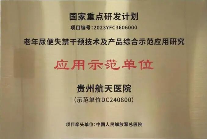 【航医喜报】贵州航天医院荣获“国家重点研发计划老年尿便失禁干预技术及产品综合示范应用研究应用示范单位”
