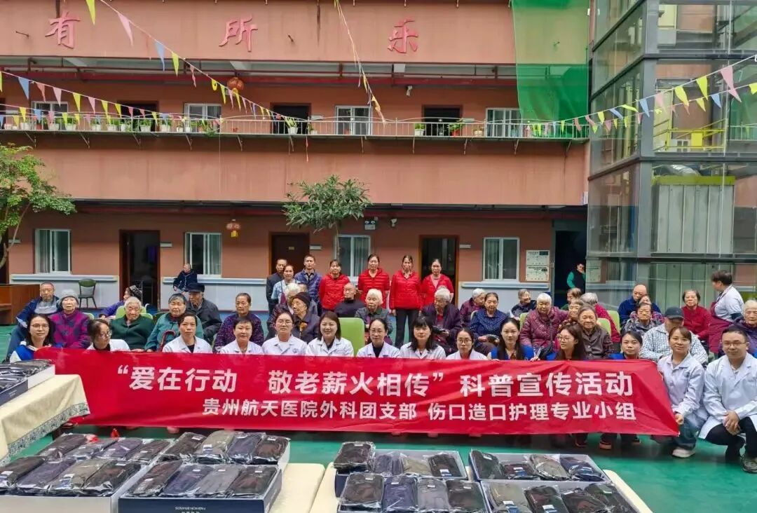 为弘扬爱老敬老的传统美德,10月25日,贵州航天医院团委联合护理部党支部、伤口造口护理专业小组、VTE防控护理专业小组走进上海路健乐养老院,开展“爱在行动,敬老薪火相传”送温暖活动,现场指导养老机构提升护理技能,为养老院200余名老人送去亲人般的关怀,以实际行动延伸优质护理服务内涵。 活动现场,我院护理团队围绕压力性损伤的识别及护理、血栓风险预防、减压工具使用、健康饮食指导、体位变换、正确翻身拍背、呼吸功能锻炼、肢体功能锻炼等知识进行了交流分享。 活动中,护理人员还细心为老人量血压、检查身体、修剪指甲、赠送手套,了解他们的生活、饮食和健康情况,用温暖的语言和行动换得了老人幸福的笑容。 本次暖心活动受到养老院工作人员和老人们的一致好评,后续医院将持续开展各类暖心服务,为广大老年人提供更多的关心关爱。 推荐阅读 1.【航医精品】呼吸与危重症医学科精品技术介绍:放射性粒子植入技术治疗肺部恶性肿瘤 End