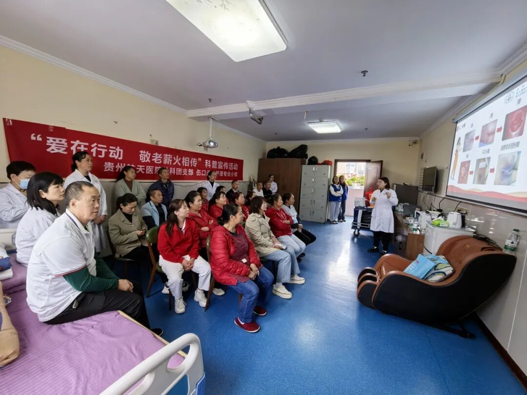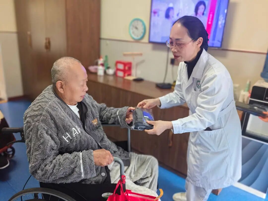 为弘扬爱老敬老的传统美德,10月25日,贵州航天医院团委联合护理部党支部、伤口造口护理专业小组、VTE防控护理专业小组走进上海路健乐养老院,开展“爱在行动,敬老薪火相传”送温暖活动,现场指导养老机构提升护理技能,为养老院200余名老人送去亲人般的关怀,以实际行动延伸优质护理服务内涵。 活动现场,我院护理团队围绕压力性损伤的识别及护理、血栓风险预防、减压工具使用、健康饮食指导、体位变换、正确翻身拍背、呼吸功能锻炼、肢体功能锻炼等知识进行了交流分享。 活动中,护理人员还细心为老人量血压、检查身体、修剪指甲、赠送手套,了解他们的生活、饮食和健康情况,用温暖的语言和行动换得了老人幸福的笑容。 本次暖心活动受到养老院工作人员和老人们的一致好评,后续医院将持续开展各类暖心服务,为广大老年人提供更多的关心关爱。 推荐阅读 1.【航医精品】呼吸与危重症医学科精品技术介绍:放射性粒子植入技术治疗肺部恶性肿瘤 End
