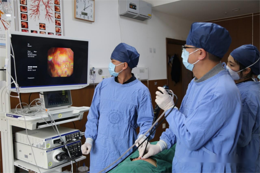 近年来,贵州航天医院各科室紧跟医学前沿,不断强技术、补短板,大力开展新技术、新项目,完成了许多高精尖、高难度、本地区“首例”的技术,填补了医院医疗技术空白,满足了群众日益增长的医疗需求。 贵州航天医院呼吸与危重症医学科是贵州省内呼吸疾病治疗规模最大,诊疗项目最全的呼吸疾病品牌科室,呼吸介入技术达到了全国先进水平,在贵州省内处于领先的地位。 本期,我们将为大家带来呼吸与危重症医学科特色技术——内科胸腔镜技术诊断和治疗胸腔疾病。 案例分享 患者苟某某,因劳累、气促,不明原因胸腔积液在某县一医院采取反复抽水等治疗手段效果不佳,当地医院考虑到患者年龄大(77岁),基础疾病较多,病情复杂,结合当地诊疗水平能力情况,建议转到上一级医院诊治,通过我院与该院建立的呼吸专科联盟绿色通道转入了我院。 患者入院后,呼吸与危重症医学科第一时间复查胸部CT,提示:右肺中叶、左肺感染,纤维化灶,左侧中量胸腔积液,右后侧胸膜轻度增厚,心包少量积液;并完善心电图、血常规、凝血功能、生化指标等术前检查。经科室专家团队集体讨论,得出患者左侧胸腔积液可能原因:结核?恶性?其他?冠心病、心功能不全、高血压病3级(高危组)、陈旧性肺结核复发?肺部感染;为进一步明确诊断,在充分评估、做好术前准备及应急预案、与患者及家属沟通的情况下,决定为患者进行内科胸腔镜检查术。 科室在患者入院第3天便实施了内科胸腔镜检查术,经检查取活检,病理不排除胸膜间皮瘤,送遵义医科大学附属医院病理会诊后诊断:胸膜间皮瘤。明确诊断后,科室专家团队为患者制定了个体化的治疗方案,患者病情很快得到有效控制,最终满意出院。半年后,医院通过电话回访,患者病情稳定,生活质量明显改善。 什么是内科胸腔镜 内科胸腔镜(medical thoracoscopy,MT)是一项微创诊断和治疗胸腔疾病的重要技术。主要应用于无创方法不能确诊的胸腔积液和胸膜疾病,通过局部麻醉后在胸壁做一个小切口,插入胸腔镜,直接观察胸膜、肺表面、纵隔等部位的病变情况,可进行活检、粘连松解及胸膜固定等操作。具有创伤小、恢复快、诊断准确性高等优点。 内科胸腔镜原理 内科胸腔镜是一项利用现代光学技术和成像技术的侵入性操作技术,应用电子支气管镜、硬质或软硬结合(半硬)的胸腔镜的一种电子内窥镜,末端装有连接着显示屏的微型摄像头。通过胸壁1-2cm左右的小切口,将内科胸腔镜及专用器械(戳卡套管)通过小切口进入胸腔,微型摄像头将胸腔内的情况投射到显示屏幕上,医生可以通过镜头全面、直观地观察患者胸腔内情况,了解胸膜病变确切位置和形态改变,还可对胸膜上的病变进行活检及治疗的操作技术,安全、微创、几乎无痛地“揭秘”不明原因的胸腔积液。 内科胸腔镜技术优势 (一)安全性高:仅需局部浸润麻醉,并发症发生率相对较低,对患者的身体条件要求较低。 (二)操作简便:操作时间短,痛苦少,患者耐受好。 (三)微创性:切口小,对患者身体损伤小,术后疼痛轻,恢复快。 (四)高分辨率成像:清晰显示胸腔内细微病变,提高诊断准确性。 (五)可直视操作:直接观察病变,进行精准活检和治疗。 (六)适用范围广:可用于不明原因胸腔积液、胸膜疾病、肺部疾病等的诊断和治疗。 (七)费用低:与外科胸腔镜比较费用低廉。 内科胸腔镜技术是贵州航天医院呼吸专科和呼吸介入诊疗优势的一部分,在2016年率先开展了内科胸腔镜技术,年手术量约100余例,已建立了快速、精准、规范、有效的一体化诊疗服务体系。目前呼吸与危重症医学科内科胸腔镜技术广泛应用于不明原因胸腔积液、气胸、脓胸的诊断和肺癌、弥漫性恶性胸膜间皮瘤等的分期,恶性或复发性胸腔积液、早期脓胸、自发性顽固性气胸的治疗。 镜下常见表现:单发或多发结节、灰白色弥漫性粟粒样结节、胸膜充血、水肿、胸膜增厚及纤维分隔或粘连带形成。 诊断方面: 胸腔积液的病因诊断。内科胸腔镜对恶性胸腔积液的诊断率可高达90%以上,胸腔镜对结核性病变诊断率极高,几乎达到96%以上。 腺 癌 恶性淋巴瘤 软骨肉瘤胸膜转移 滑膜肉瘤胸膜转移 结核性胸膜炎 治疗方面: 脓胸 肺大泡 贵州航天医院 呼吸与危重症医学科学科带头人 廖江荣 国务院政府特殊津贴专家 二级教授 主任医师 贵州航天医院副院长 国家级学术任职: 第二届中国医药教育协会介入微创专业委员会呼吸分会副主任委员 中国抗癌协会肿瘤微创治疗专业委员会常务委员 中国防痨协会结核病转化医学专业分会常务委员 第一届中国人体健康科技促进会呼吸介入专委会常务委员 中国医疗保健国际交流促进会结核病学分会第三届委员会常务委员 中国抗癌协会肿瘤微创治疗专业委员会粒子治疗学组第四届委员会委员 中华医学会结核临床专业委员会内镜介入委员 中华医学会放射学分会第十五届委员会介入学组呼吸系统介入专业委员会委员 北京健康促进会中青年专家委员会胸部疾病精准活检分委会副主任委员 中国医师协会介入医师分会第二届委员会肿瘤消融专业委员会委员 中国结核病防治综合质量控制专家指导委员会委员 亚洲冷冻治疗学会常务委员 世界内镜医师协会呼吸内镜协会常务理事 内镜临床诊疗质量评价专家委员会委员 “西部呼吸介入联盟”副理事长 专业擅长: 贵州航天医院 呼吸与