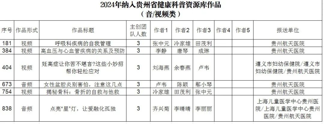 【航医喜报】贵州航天医院6个科普作品被纳入贵州省健康科普资源库作品