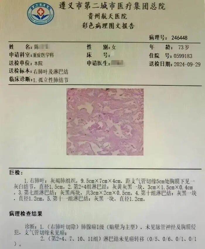 经过精心的术前准备,手术由心胸外科主任陈光春教授主刀,为患者成功切除了右上肺部肿瘤,切口仅3.5cm,出血量控制在50ml以内。术后,陈阿姨恢复较快,精神状态良好,切口疼痛轻,术后第3天便顺利出院。