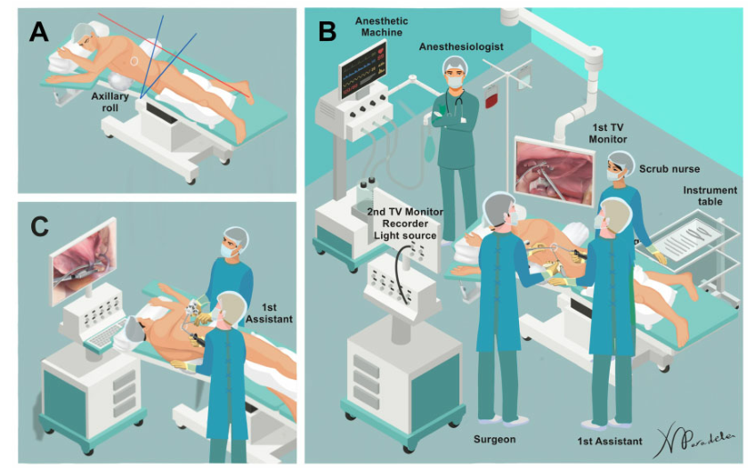 胸腔镜是一种配备有高清晰度摄像系统的医疗设备,它能够将胸腔内的显微细节实时传输到显示器上,为医生提供清晰的手术视野,通过在患者腋下或适当位置放置一个单孔操作装置,该装置具有一个创口,用于插入胸腔镜和手术器械,在胸腔镜的支持下,完成切除肿瘤、移除异物、缝合伤口等多种复杂手术步骤。