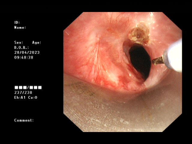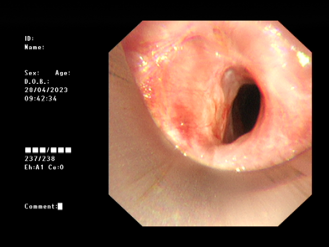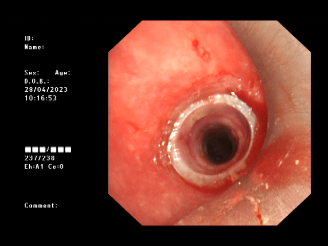 一名患者因出现呼吸困难、气促等症状,就诊于我院一专科联盟合作单位,因当地医疗条件有限,患者通过我院专科联盟绿色通道转入就诊,入院后,我院呼吸与危重症医学科专家团队当即针对患者情况进行讨论,诊断为:重度气道瘢痕狭窄;经过严格的评估,患者具有硬质支气管镜下治疗的指征,在征得患者及家属同意的前提下,决定为患者实施硬质支气管镜技术治疗。