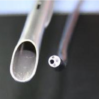 硬镜为一空心不锈钢管,管径均一,管壁厚2 mm,成人硬镜直径9.2-14mm,长度33-40cm,远端是斜面,以便通过声门和气道狭窄区域,同时也利于铲切除去气道壁上的肿瘤,远端1/3镜体的管壁上带有侧孔,便于镜体进入一侧主支气管时对侧气道保持通气。