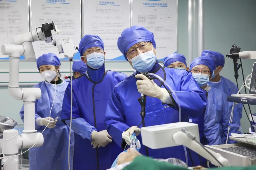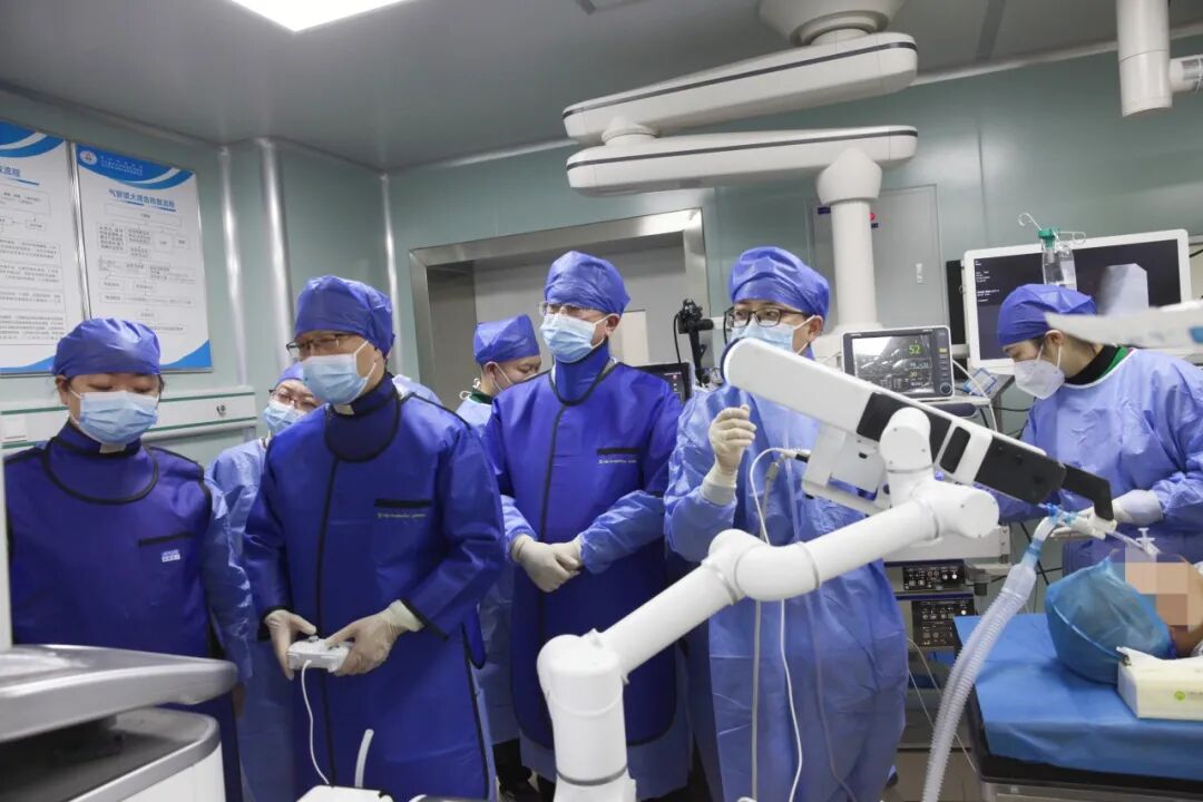 12月27日,贵州航天医院呼吸与危重症医学科成功开展贵州省首例机器人支气管镜下肺癌冷冻消融(红袖刀)治疗术,同时开展了贵州省首例机器人支气管镜肺活检术。 AI智能诊疗技术是今后医学发展的方向,机器人支气管镜目前是前沿的呼吸疾病诊疗技术,贵州航天医院呼吸科团队一如既往接轨国际国内先进技术,特别邀请援黔专家上海交通大学医学院附属胸科医院孙加源教授莅临指导呼吸科团队,成功开展贵州省首例机器人下经支气管镜肺癌冷冻消融(红袖刀)术。 机器人支气管镜作为新兴的呼吸介入诊疗平台,采用智能AI算法和全域感知技术,可以实现定位、诊断、治疗全流程一体化,对肺外周结节进行精准诊疗,降低呼吸介入手术并发症的发生,提高手术安全性,能够真正地为患者带来获益,改善手术预后。 机器人采用手柄操作控制机器人导管,与传统支气管镜操作相比,学习曲线更短,医生更容易掌握。并且机器人导管可360°旋转,最大弯曲角度可达210°,可抵达常规支气管镜难以触及的病灶部位,实现全肺精准诊疗。 该技术的开展,填补了省内经AI智能支气管镜肺癌、高危肺结节诊疗的空白。贵州航天医院呼吸与危重症医学科(遵义市呼吸疾病临床医学中心)将经支气管镜与经皮肺穿刺消融治疗肺癌、高危肺结节紧密结合,缓解本区域老百姓外出看病难的问题。 特邀专家 孙加源 上海交通大学医学院附属胸科医院副院长 上海交通大学医学院附属胸科医院呼吸与危重症医学科主任医师、博士生导师,呼吸病介入诊疗中心主任,上海呼吸内镜工程技术研究中心主任,“十三五”国家重点研发计划首席科学家,中华医学会呼吸病学分会青年委员会副主任委员,中华医学会呼吸病学分会介入呼吸病学学组副组长,中国人体健康科技促进会呼吸介入专业委员会主任委员,上海市医学会呼吸专科分会秘书,上海市医学会呼吸专科分会介入学组长,中国医药教育协会介入微创呼吸分会候任主任委员,德国海德堡大学附属胸科医院客座教授。 廖江荣教授简介 廖江荣 国务院政府特殊津贴专家 二级教授 主任医师 呼吸与危重症医学科 学科带头人 国家级学术任职: 第二届中国医药教育协会介入微创专业委员会呼吸分会副主任委员 中国抗癌协会肿瘤微创治疗专业委员会常务委员 中国防痨协会结核病转化医学专业分会常务委员 第一届中国人体健康科技促进会呼吸介入专委会常务委员 中国医疗保健国际交流促进会结核病学分会第三届委员会常务委员 中国抗癌协会肿瘤微创治疗专业委员会粒子治疗学组第四届委员会委员 中华医学会结核临床专业委员会内镜介入委员 中华医学会放射学分会第十五届委员会介入学组呼吸系统介入专业委员会委员 北京健康促进会中青年专家委员会胸部疾病精准活检分委会副主任委员 中国医师协会介入医师分会第二届委员会肿瘤消融专业委员会委员 中国结核病防治综合质量控制专家指导委员会委员 亚洲冷冻治疗学会副主席 世界内镜医师协会呼吸内镜协会常务理事 内镜临床诊疗质量评价专家委员会委员 “西部呼吸介入联盟”副理事长 专业擅长: 呼吸系统(肺)疑难病的诊断及危重病的抢救,呼吸系统(肺)感染性、疑难性疾病介入快速诊断(ROSE),尤其在肺癌、肺小结节早期诊断,肺癌微创综合靶向治疗,难治性、复治性、重症肺结核诊疗,硬质支气管下复杂性气道狭窄诊治,纤支镜介入治疗气道肿瘤、结核、气道狭窄(球囊扩张、支架植入、高频电刀、氩气刀、冷冻、灌洗、注药、微波消融),间质性肺疾病的诊疗上具有极高水平;带领团队勇于创新,在贵州省率先开展多项新技术、新疗法,如CT引导下及纤支镜下I125粒子植入及CT引导下微波、射频消融介入治疗肺癌等多项新技术,带动了贵州省肺部疾病的介入治疗水平提高。 呼吸与危重症医学科简介 贵州航天医院呼吸与危重症医学科以呼吸危重症和介入呼吸病学为强力推手,以肺部感染性疾病及肺癌、肺小结节的早期精准诊疗、慢性呼吸疾病康复治疗为特色,以人才团队建设为核心的科室发展模式,现已成为省内呼吸疾病治疗规模最大,诊疗项目最全的呼吸疾病品牌科室。是贵州省医学重点学科、临床医学重点专科建设单位,遵义市首批呼吸重点学科、重点专科建设单位。是国家卫健委能力建设和继续教育肿瘤微创介入建设中心、贵州省县级医院微创介入培训中心、遵义市呼吸疾病临床医学中心。是国家呼吸医疗质量控制与管理哨点医院、遵义市呼吸内科专业医疗质量控制中心。是中国医药教育协会介入微创呼吸分会呼吸介入技术培训中心单位;国家卫健委海医会呼吸分会ROSE专委会“诊断性介入肺脏病学快速现场评价”培训基地;中国肺癌防治联盟“贵州航天医院肺结节诊治”分中心,中国人体健康科技促进会呼吸介入技术培训基地,贵州省中西医结合会呼吸学分会呼吸介入专委会主委单位。 基本情况 平均每年开展气管镜诊疗约4000例,经皮肺穿刺介入诊疗近千例,开展的项目包括经支气管镜(软、硬)下冷冻、氩气刀、高频电刀、球囊扩张、支架置入、超声内镜诊疗等气道介入诊疗技术,经皮肺穿刺活检及肿瘤消融术(微波、冷冻)、ROSE技术、内科胸腔镜诊疗及经血管介入诊疗技术,且多项呼吸介入诊疗技术在省内处于领先水平。 诊疗范围 致力于呼吸系统感染性、疑难性疾病的介入快
