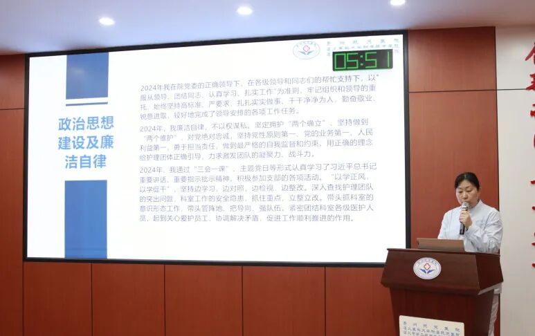 1月8日,我院召开2024年度护士长述职述廉测评会,院领导、护理部、党员代表、职工代表、护士长参加会议,会议由党委委员、副院长彭亮主持。 测评会上,彭亮宣读护士长述职述廉评分规则。 各科室护士长围绕廉洁自律工作、意识形态工作、科室事务管理、护理质量与安全管理、护理服务管理、护理教学管理、科研与创新、人力资源管理等方面,回顾了2024年各项工作,发掘了科室亮点,查找了科室发展中存在的不足,提出了2025年度工作计划。 党委书记杨军肯定了护理团队成绩,并对2025年护理工作提出要求。一是坚持“以患者为中心”,强技术、优服务、美环境,深耕护士长政治能力、专业能力、执行能力、管理能力,提升工作效率;二是要加强护理人才的培养,提升护理质量,发挥各科室的特色优势,为患者提供专业、优质的护理服务;三是结合医院整体规划,制定2025年工作计划及目标,以党建为引领,为医院护理事业蓬勃发展全力以赴,引领团队不断砥砺前行。 贵州航天医院简介 贵州航天医院位于红城遵义市中心地段大连路615号,历经五十余年的峥嵘岁月,已发展为集医疗、急救、预防、保健、科研、教学为一体的市属三级甲等综合医院。医院始于三线建设,由原航天部〇六一基地3417、3427医院合并而成,2019年移交遵义市人民政府管理。是遵义医科大学附属航天医院、遵义市第二城市医疗集团总院。 医院占地面积4万平方米,总建筑面积10.2万平方米,编制床位1200张,设有临床、医技、行政职能科室共60个。现有职工1174人,国务院特殊津贴专家2人,二级教授2人,三级教授1人,博士、硕士研究生导师6人,贵州省千层次人才1人,遵义市15851二层次人才2人,博士、硕士112人(含在读),高级职称以上214人。 医院现有2个国家卫健委能力建设和继续教育建设中心〔肿瘤微创介入(肺癌方向)和神经外科〕,1个省级重点学科(呼吸与危重症医学科),6个省级重点专科(呼吸与危重症医学科、神经内科、骨科、泌尿外科、急诊科、消化内科),2个市级重点学科,10个市级重点专科。是亚洲冷冻治疗学会常务理事单位、中国人体健康科技促进会首批呼吸介入技术培训基地、遵义市呼吸内科专业医疗质量控制中心、遵义市呼吸疾病临床医学中心、遵义市骨科临床医学中心、遵义市肺癌与肺小结节早期诊断精准医学重点实验室、遵义市城市检测基地。 呼吸与危重症医学科开展的肺部血管介入治疗,经纤支镜下冷冻、氩氦刀、高频电刀治疗良恶性肿瘤,使我院肺部疾病诊疗技术迈入国内先进水平。泌尿外科开展的腹腔镜下膀胱癌和前列腺癌根治术走在贵州省前列。消化内科在脂肪肝、肝纤维化、肝硬化无创诊断技术和胃肠动力疾病全程规范管理达到国内先进水平。医学检验科结核病诊断技术水平已居于国内前列。心血管内科特色开展冠脉复杂病变、结构性心脏病等优势介入手术,神经内科、骨科、急诊科、心胸外科等重点专科诊疗水平已居于全市前列。近年来,医院科研教学能力显著提升,三年内共承担省科技厅、省卫健委等科研项目73项,发表核心期刊11篇,SCI 6篇,省级259篇。 医院以遵义市第二城市医疗集团为依托,按照“一院多区”模式,实现双向转诊汇川区域全覆盖,着力打造“心电一张网”、继发性高血压筛查等项目,以慢性病、多发病为切入点,推动优质医疗资源下沉。聚焦公立医院改革与高质量发展示范项目,以呼吸与危重症医学科等优势学科为引领,积极推进医联体、专科联盟建设,带动区域内基层技术服务能力提升。 推荐阅读 编 辑:唐语蔚 一 审:钟 涛(护理部) 二 审:陈 伟 三 审:蒙昌耀