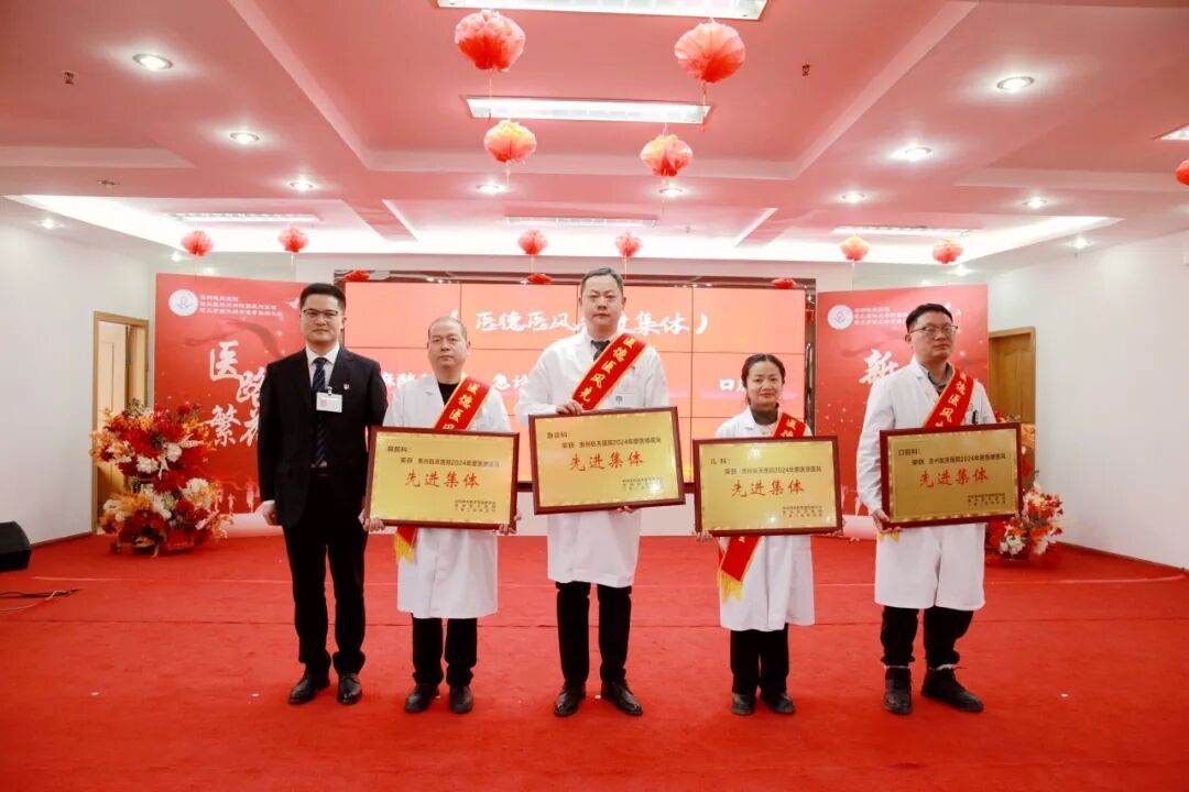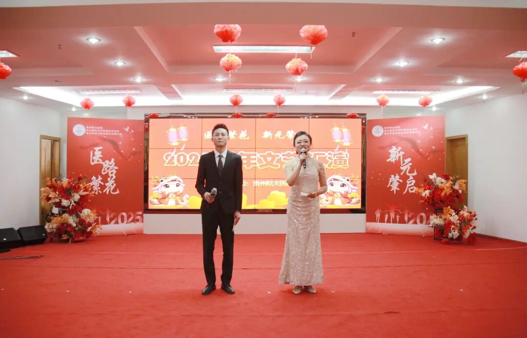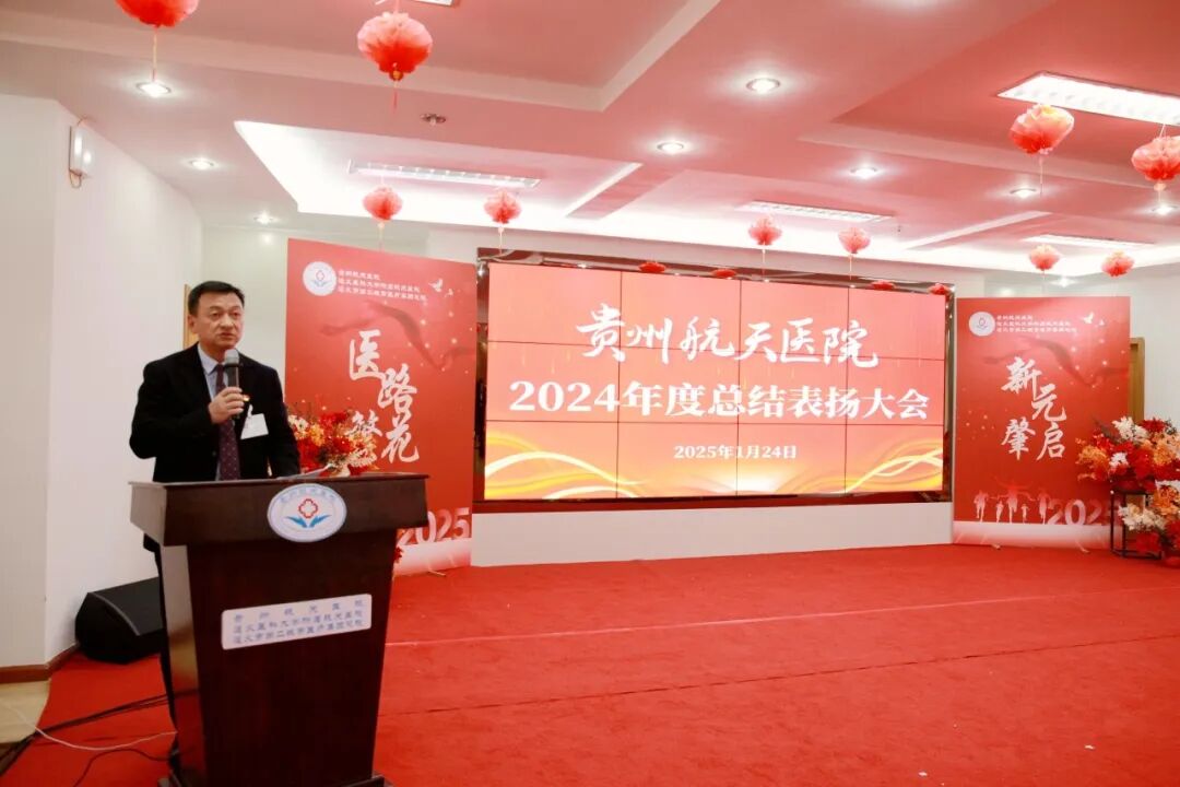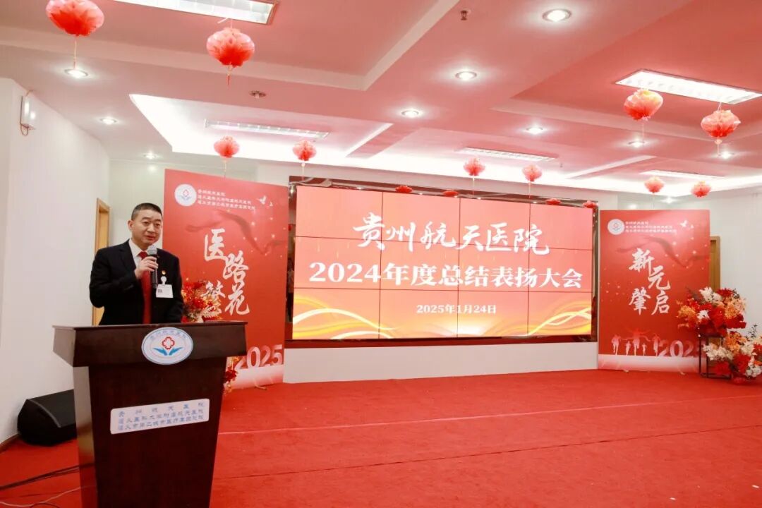 1月24日,在一片欢乐温馨的节日氛围中,贵州航天医院领导班子成员、干部职工、受表扬人员、特邀嘉宾等欢聚一堂,迎来了“‘医’路繁花 新元肇启”2024年总结表扬大会暨2025年新春文艺汇演,携手欢庆过去一年奋力拼搏取得的丰硕成果,共同开启新一年的美好征程! 总结表扬大会 党委书记杨军代表医院领导班子成员向受表扬的集体和个人表示热烈祝贺,并激励大家在今后的工作中要继续立足岗位,树牢“以患者为中心”的服务理念,再接再厉,为保障人民群众的健康做出更大贡献。 会上,党委副书记、院长姜黔峰宣读《贵州航天医院2024年度先进集体及先进个人》表扬文件,对过去一年中表现突出的集体与个人进行表扬。 表扬现场 优秀管理人员 发展运营奖 优秀科室 十佳员工 医疗质量与安全奖 优秀质控员 精品技术奖 MDT团队奖 科研先进集体 科研先进个人 教学先进集体 教学先进个人 医保价格管理先进集体 医保价格管理先进个人 医德医风先进集体 医德医风先进个人 新春文艺汇演 汇演伊始,杨军在致辞中代表医院领导班子向履职尽责、辛勤奉献的全体干部职工致以诚挚的问候,并鼓励大家站在新起点,展望新高度,为守护群众健康再谱新篇。 会上,德江县民族中医院党委书记熊鹤为我院送上新春的祝福,他表示,在新的一年中,两院将赓续情谊,深化合作,充分发挥中医力量,为广大群众健康保驾护航。 文艺汇演 精彩瞬间 各分工会、德江县民族中医院 精心编排的 15个节目轮番上演 灯光璀璨,气氛热烈 幽默的小品、动人的歌声 优美的舞蹈、深情的演奏 …… 掀起了阵阵高潮 充分展现了航医人多才多艺、 开拓创新、爱岗敬业、团结奋进 的精神风貌 内科二分工会 古典舞:《湘江雨畔》 康复医学科 说唱表演:《康复医学,你可知晓?》 皮肤科 古筝独奏:《大话西游》 门急机关后勤分工会 舞蹈:《美丽的神话》 外科二分工会 诗朗诵:《赞白衣天使》 产 科 情景剧:《产房那些事》 外科一分工会 歌 曲:《太 阳》 医技分工会 舞蹈串烧:《医路欢舞 福满新春》 医务部 护理部 合 唱:《如 愿》 血管甲乳外科 乐器二重奏:《山楂树》 德江县民族中医院 情景剧:《中医之光 闪耀舞台》 急诊科 手 语:《明天会更好》 中医科 小 品:《新时代的中医人》 手术麻醉科 双人舞:《乌兰巴托的夜》 门急机关后勤分工会 歌曲串烧:《点亮2025逐梦前行》 此次新春文艺汇演,不仅为医院职工提供了一个展现自我的舞台,丰富了职工的文化生活,更是航医文化的凝聚和绽放。 2025年,贵州航天医院将秉承“以患者为中心”的服务理念,锚定“强技术、优服务、美环境”的目标,加强医学人文关怀,不忘初心,砥砺前行,以团结奋进的姿态、锐意进取的精神,继续为守护群众的健康全力以赴。