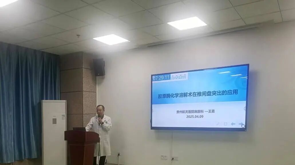 4月9日,贵州航天医院第56次晨读会由我院麻醉科教研室主任、副主任医师王勇作学术交流,他以“胶原酶化学溶解术在椎间盘突出的应用”为题,详细讲解了该技术的治疗原理、适应症范围及规范化操作流程等具体情况,重点剖析了DSA引导下经皮穿刺腰椎间盘和颈椎间盘化学溶解术的技术要点,通过典型病例图文结合的方式详细阐述了术中注意事项、疗效评估标准及并发症防治等问题。 麻醉科专家简介 李光才 中共党员,麻醉科党支部书记、主任,主任医师 临床擅长:对围手术期麻醉操作、管理及疑难危重病人的麻醉处置具有丰富的临床经验。 中国心胸血管麻醉学会(CSCTVA)创新与推广分会全国委员,贵州省麻醉学分会委员,贵州省麻醉质控中心委员,遵义市麻醉学分会副主任委员,遵义市医疗事故鉴定专家。曾先后到四川大学华西医院、重庆医科大学附属医院、遵义医科大学附属医院的麻醉科培训学习。主持多项新技术、项目的临床应用,主持省部级科研课题1项并顺利结题,发表论文10余篇。 王 勇 中共党员,麻醉科教研室主任、副主任医师 临床擅长:从事临床麻醉及疼痛诊疗工近20年,擅长急危重患者、疑难病例的麻醉、超声引导下血管穿刺和神经阻滞;对颈椎病、腰椎源性疼痛、肩周炎、骨性关节炎、筋膜炎、带状疱疹后遗神经痛、三叉神经痛等慢性疼痛及顽固性失眠等的超声引导下精准可视化治疗具有丰富的临床经验。 中国疼痛康复产业技术创新联盟专家委员会委员,中国中医药信息学会疼痛学分会常务理事,遵义市医学会麻醉学分会第五届委员会委员,曾到湘雅医院和华西医院进行临床麻醉专项培训,参加“黔医人才计划”到北京宣武医院学习疼痛治疗。主持和参与市级科研3项,参编论著1部,在各种核心期刊上发表论文10余篇。 肖 旭 中共党员,麻醉科主任医师 临床擅长:对小儿、老年骨科、介入手术、病理产科等临床麻醉手术工作具有丰富的经验。 毕业于遵义医科大学临床麻醉专业,遵义市医学会麻醉学分会第五届委员会委员,参与市级科研项目多项,发表论文10余篇,其中北图核心1篇。 杜庆菊 中共党员,麻醉科副主任医师 临床擅长:从事临床麻醉工作近30年,熟练掌握各种急危重症患者的麻醉操作和常见疼痛疾病的诊疗。 毕业于苏州医学院临床医学专业,曾到北京宣武医院进行疼痛诊疗专项培训,发表论文多篇。 付志权 民革党员,麻醉科副主任医师 临床擅长:从事临床麻醉工作近30年,擅长急、危、重、小儿及高龄患者的麻醉及抢救工作,对各种临床麻醉、复苏及抢救、颈胸段高位硬膜外麻醉与非插管全麻有丰富的经验。 毕业于遵义医学院临床医学系,遵义市医疗事故鉴定专家成员,曾在多地进修学习。 段玉屏 中共党员,麻醉科副主任医师 临床擅长:擅长疑难危重病人的麻醉处理及疼痛治疗。 毕业于遵义医学院麻醉专业,曾在重庆医科大学进修学习疼痛治疗,发表学术论文10余篇。 朱昭平 麻醉科副主任医师 临床擅长:从事临床麻醉工作近20年,对产科病人的麻醉、小儿麻醉、困难气道的处理、老年和危重患者的抢救及麻醉有丰富的临床实践工作经验。 遵义市医学会麻醉学分会第五届委员会常委。先后在遵义医科大学附属医院、重庆医科大学附属医院麻醉科进修学习;在贵州省第一届临床麻醉岗位技能比赛中获得可视喉镜抢救气管插管一等奖和电子软镜气管插管二等奖,并获得岗位技能能手称号,发表学术论文数十篇。 麻醉科简介 基本情况 贵州航天医院麻醉科现有专业技术人员55人,其中高级职称11人。科室有手术间14间,分A、B两个区,拥有高级麻醉机10余台、多参数监护仪10余台,提供手术内及手术外各类麻醉项目。 专科特色 (一)支气管内麻醉下的大容量双肺灌洗术 2008年,在贵州省内率先开展了支气管内麻醉下的大容量双肺灌洗术以治疗尘肺和蛋白沉积症等疾病。 (二)自体血回输技术 2015年,开展了自体血回输技术,这个技术的开展,为抢救危重患者争取了宝贵的时间,减少了输异体血的风险。 (三)超声引导下的穿剌技术 2016年,开展了超声引导下的神经阻滞技术和中心静脉穿刺术,此技术的开展,为可视化麻醉打下了基础,同时也减少因盲目穿剌给患者带来的痛苦和风险。 (四)小儿先天性心脏疾病手术麻醉 (五)高频通气麻醉硬质气管镜下气道内各种手术及喉罩下各种治疗麻醉 (六)各种慢性疼痛的诊疗 冲击波治疗 银质针巡检 颈神经根脉冲射频调节术 DSA下的椎间盘胶原酶溶解术 诊疗范围 (一)手术室内:除了常规手术的麻醉外,还开展了胸外科腔镜下肺癌食道癌根治术,泌尿外科腔镜下肾癌、前列腺癌、膀胱癌根治术,骨科髋关节、膝关节置换手术,神经外科颅内肿瘤切除术,肝胆外科左右肝切除、胰头癌根治术,普外科腔镜下结肠癌、直肠癌根治术,妇科宫颈癌、卵巢癌根治术,重症产科等大型四级手术的麻醉。 (二)手术室外: 1.气管镜室:与呼吸与危重症科合作,开展了高频通气麻醉硬质气管镜下气道内的各种手术及喉罩下各种治疗的麻醉及无痛纤支镜。 2.DSA:一是与心内科合作,开展了房(室)间隔缺损等介入手术的麻醉(主要是小儿先心病的治疗);二是与神经内外科合作,开展了颅内动脉瘤栓塞术的麻醉;三是与肝胆外科合作,开展了无痛ERCP。 3.胃肠室:与消化内科合作,开展了无痛胃肠镜。 4.人流室:与妇科合作,开展了无痛人流。 5.产科: