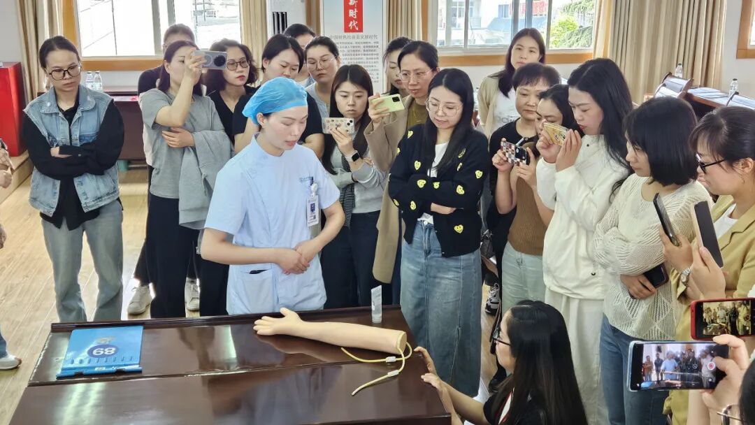 培训期间,学员通过现场观摩学习了迷你中线导管置管术标准操作流程,并借助手势模拟演示直观了解经外周静脉置入中心静脉导管(PICC)术后护理要点。