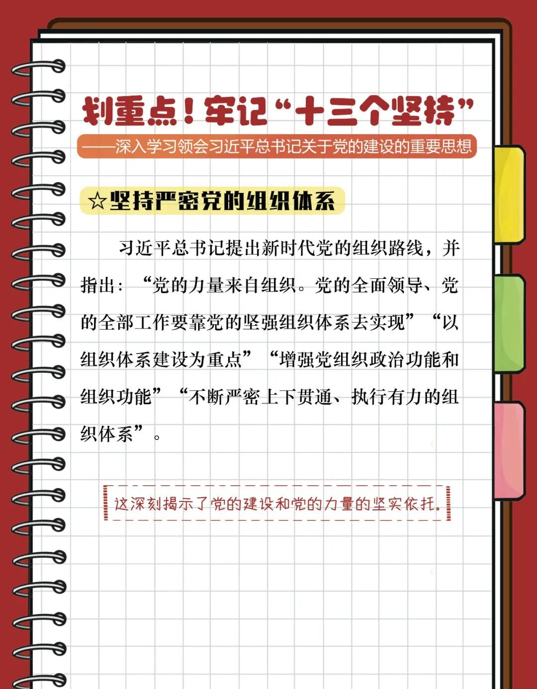 党的十八大以来,习近平总书记围绕建设什么样的长期执政的马克思主义政党、怎样建设长期执政的马克思主义政党的重大时代课题,突出全面从严治党这个主题主线,提出一系列管党治党、兴党强党的新理念新思想新战略,形成习近平总书记关于党的建设的重要思想。习近平总书记关于党的建设的重要思想,是习近平新时代中国特色社会主义思想的重要组成部分,是新时代党的建设理论发展和实践经验的科学总结,是马克思主义建党学说中国化时代化的最新成果,是全面推进新时代党的建设新的伟大工程的根本遵循和行动指南。2023年6月28日至29日召开的全国组织工作会议,用“十三个坚持”集中概括了习近平总书记关于党的建设的重要思想,深刻阐明了党的建设的根本原则、科学布局、价值追求、重点任务。这是全党首次正式提出和系统阐述“习近平总书记关于党的建设的重要思想”,在马克思主义建党学说发展史和中国共产党党建史上具有标志性的里程碑意义。