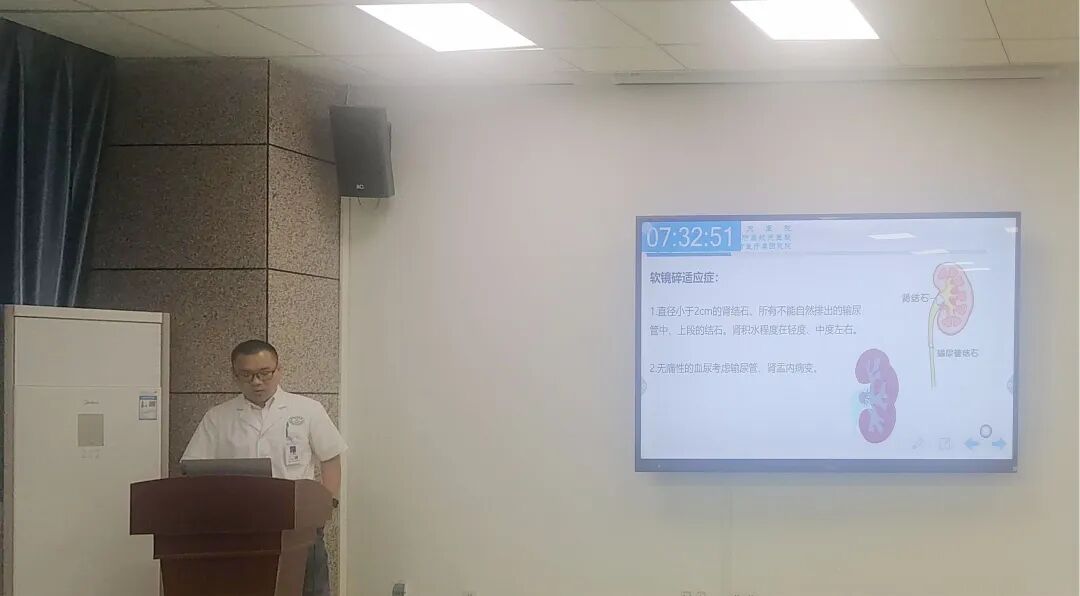 5月7日,贵州航天医院第60次晨读会由我院泌尿外科医师谢龙作学术交流,他以“负压吸引下软镜碎石取石术”为题,围绕输尿管软镜技术的临床应用与发展趋势,详细讲解了经尿道输尿管镜肾盂激光碎石取石术的操作要点及输尿管软镜技术的适应症与适用范围,并通过临床案例对比,重点阐述了经皮肾镜与输尿管软镜联合碎石术的协同优势,同时介绍了超微通道经皮肾镜联合输尿管软镜碎石术的技术创新点。针对临床疑难病例,分享了肾脏憩室内结石的处理策略、上尿路不明原因血尿的规范化排查流程,以及经皮肾镜术后残余结石的双镜联合处理方案。 泌尿外科专家简介 石 英 中共党员,泌尿外科党支部书记、负责人,主任医师 临床擅长:从事泌尿外科专业近30年,熟练掌握泌尿系各类疾病的诊治,具有丰富的临床经验,擅长泌尿系结石、腹膜后肿瘤及泌尿系肿瘤的手术治疗,对泌尿系感染、泌尿系结核、尿源性脓毒血症的救治有独到的见解及抢救经验。在贵州省率先引入输尿管软镜技术,同时在男科领域,对男性阳痿、早泄及前列腺疾病有很深的研究。 中国医师协会泌尿外科分会感染协作组委员,奥林巴斯泌尿系软镜西南区专家组成员,西南地区第一批输尿管软镜专家组成员,贵州省医学会泌尿外科分会委员,贵州省性学会理事,贵州省性学会常务委员,贵州省泌尿外科专业医疗质量控制中心专家委员会委员。 李国成 中共党员,泌尿外科副主任医师 临床擅长:从事泌尿外科及男科工作10余年,曾多次前往上海交通大学附属第一人民医院、中国中医科学院西苑医院进修学习男科;擅长性功能障碍的诊治、男性整形手术、前列腺增生激光手术、显微手术等。 中国人体健康科技促进会男科学专业委员会委员,贵州省性学会泌尿外科分会委员,贵州省医学会男科学分会委员,遵义市医学会男科学分会副主任委员兼秘书长,遵义市医学会泌尿外科分会常务委员,贵州航天医院男科带头人。 李 凯 中共党员,泌尿外科副主任医师 临床擅长:贵州航天医院肿瘤腔镜组带头人,擅长肾癌根治术、输尿管癌根治术、膀胱及前列腺癌根治术、腹腔镜输尿管狭窄切除吻合术、输尿管切开取石术等手术,在遵义市率先开展泌尿系结核后膀胱挛缩全腹腔镜下膀胱扩大术。 贵州省医学会泌尿外科分会青年委员,遵义市医学会男科分会常务委员,遵义市医学会泌尿外科分会常务委员。 谢 龙 中共党员,泌尿外科主治医师 临床擅长:熟练掌握泌尿外科基本手术,特别擅长泌尿系结石手术,单独完成输尿管硬镜、软镜1000余台,经皮肾碎石200余台,2023年共开展手术541台,个人年平均手术量约400台,三、四级手术量日最高达6台。 曾前往华西医院进修学习系统结石治疗,对输尿管软镜碎石有了更深刻的认识和体会,拜师清华长庚医院泌尿外科胡卫国教授,极大提升了经皮肾超声碎石及结石的微创治疗能力;从业以来,荣获医院年度考核优秀等次4次。 泌尿外科简介 基本情况 贵州航天医院泌尿外科创建于20世纪60年代,经过几代人的努力,微创与内镜手术占比达90%以上,科室亚专业框架完善。是贵州省临床重点专科建设单位、北京清华长庚医院李建新教授团队诊疗及会诊中心、北京医学会尿路修复与重建诊疗及会诊中心、上海公济泌尿外科集团遵义中心、上海援黔专家李铮教授男科工作室、贵州省泌尿外科质量控制专家委员单位。 专科特色 (一)泌尿系结石内镜碎石技术 泌尿系结石微创治疗领域方面是贵州省首家引进科医人钬激光碎石技术科室,在遵义地区率先掌握输尿管硬镜、软性镜,经皮肾镜钬激光碎石技术。目前是北京清华长庚医院泌尿外科“手把手”经皮肾镜碎石技术培训基地、贵州省输尿管软镜培训基地。 1.负压吸引可弯曲软镜鞘电子软镜碎石术 2.标准与超微通道相结合的经皮肾镜碎石取石术 (二)微创腹腔镜技术 泌尿外科腹腔镜技术师承于浙江省人民医院、北京解放军总医院。目前采用经腹、经后腹双入路法的腹腔镜技术完成肾部分切除、肾切除、肾输尿管全长切除、肾盂输尿管成形、输尿管狭窄吻合、膀胱翻瓣等手术。在遵义地区率先掌握腹腔镜下膀胱癌根治术、腹腔镜下前列腺癌根治术。 (三)男科、盆底技术临床应用 遵义地区男科分会主委单位,是贵州省首家引进尿动力学检查并取得了全国资质认证科室,也是贵州省首家进行RigiScan检查的单位。在遵义地区率先掌握显微取精子技术以及显微镜下治疗精索静脉曲张、显微镜下输精管吻合、输精管附睾吻合技术。率先采用前列腺激光剜除术治疗前列腺增生症。在陆军军医大学西南医院泌尿外科主任沈文浩教授指导下,完成遵义市首例神经源性膀胱骶神经调节刺激器置入术。 诊疗范围 诊疗范围(除外肾移植、癌栓):泌尿系结石、泌尿系肿瘤、肾上腺疾病、肾积水、前列腺增生、男性生殖器功能障碍(精索静脉曲张、生殖道感染、输精管梗阻等)、盆底功能障碍性疾病(膀胱脱垂、排尿功能异常、尿失禁)、泌尿生殖系畸形。 泌尿外科拥有独立门诊治疗室、日间手术室、尿动力学检查室、精液分析检查室、男性勃起功能检查及治疗室、ESWL治疗室、结石分析检查室。 end