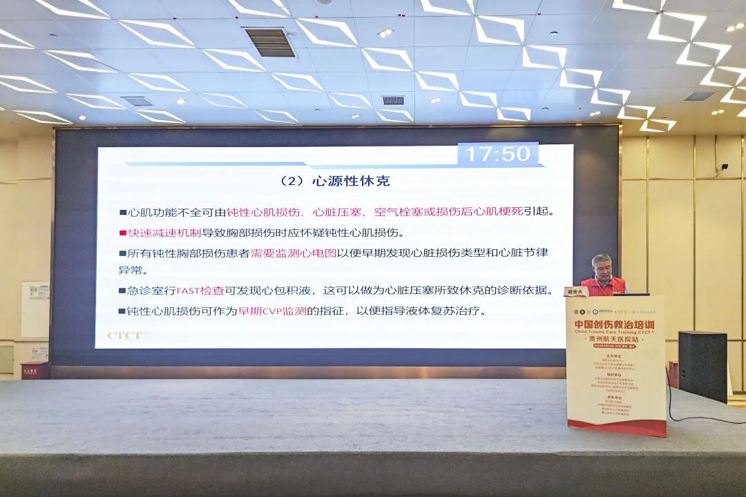 5月29日-30日,由国家创伤医学中心、创伤与化学中毒全国重点实验室、国家重大公共卫生事件医学中心主办,上海王正国创伤医学发展基金会、中国创伤救治培训专家委员会、国家创伤医学中心教育培训专业委员会、《创伤外科杂志》组织,贵州航天医院、中国创伤救治培训省域基地(贵州省紧急救援协会、遵义医科大学附属医院)承办的“中国创伤救治培训(CTCT)——贵州航天医院站”在遵圆满落幕。 特邀浙江大学医学院附属第二医院周文教授、陆军特色医学中心(重庆大坪医院)孙士锦教授、浙江省金华市中心医院孔来法教授、华中科技大学同济医学院附属同济医院高伟教授、中国创伤高级培训项目(贵州)与CTCT省域基地(贵州)负责人邓进教授、遵义医科大学附属医院喻安永教授、陆军军医大学大坪医院(陆军特色医学中心)蹇廷旭教授、上海王正国创伤医学发展基金会傅莹教授等省内外知名专家,贵州航天医院党委书记杨军出席开幕式并致辞。贵州航天医院党委委员、副院长彭亮主持开幕式。省内外医疗机构140余名创伤有关医务人员参训。 贵州航天医院党委书记杨军致辞 中国创伤联盟专家组代表周文教授讲话 贵州航天医院党委委员、副院长彭亮主持 开幕式结束后,孔来法教授、高伟教授、孙士锦教授、周文教授、邓进教授、喻安永教授分别围绕创伤救治质量控制指标,休克评估及监护,损害控制性复苏,头、颈、面、胸、腹部创伤评估和处理,四肢、脊柱和骨盆创伤评估和处理等急救内容,结合理论、案例讨论等形式进行授课,用大量图片、视频、丰富的创伤救治和教学经验,展示了规范、安全、实用的创伤救治理念和技术。 陆军特色医学中心(重庆大坪医院)孙士锦教授讲授《创伤救治质量控制指标》 浙江大学医学院附属第二医院周文教授讲授《创伤早期评估和处理》 浙江省金华市中心医院孔来法教授讲授《损害控制性复苏》 遵义医科大学附属医院喻安永教授讲授《休克评估及监护》 陆军特色医学中心(重庆大坪医院)孙士锦教授讨论案例:《如何缩短院内术前时间》 华中科技大学同济医学院附属同济医院高伟教授讲授《头、面、颈部创伤的评估与处理》 遵义医科大学附属医院喻安永教授讲授《腹部创伤评估和处理》 华中科技大学同济医学院附属同济医院高伟教授讨论案例:《胸腹联合伤手术顺序》 中国创伤高级培训项目(贵州)与CTCT省域基地(贵州)负责人邓进教授讲授《四肢、脊柱和骨盆创伤评估和处理》 浙江省金华市中心医院孔来法教授讨论案例:《血流动力学不稳定骨盆,骨折如何控制出血》 陆军特色医学中心(重庆大坪医院)孙士锦教授讨论案例:《批量伤员救治》 贵州航天医院黄才喜教授进行案例汇报 课后,培训结合授课内容和临床特点,就“伤情评估及创伤小组、ABC、VSD技术”开展了实操演练环节,学员们在专业指导下,通过反复练习和考核,不仅掌握了扎实的操作技能,还获得了专业认证的证书,为未来的临床实践增添了信心和底气。 中国创伤救治培训是由专业组织实施的我国首个标准化创伤救治培训精品医学继续教育项目,在提升我国创伤救治能力、推动标准化建设、加强多学科协作、培养专业人才、提高公众意识以及促进国际交流与合作等方面发挥了重要作用。 贵州航天医院急诊科专家简介 彭 亮 中共党员,贵州航天医院副院长,急诊科学科带头人,副主任医师,硕士研究生(博士在读) 专业擅长:对急慢性呼吸衰竭、心力衰竭、各类急危重症、急性中毒及急性创伤等疾病的临床诊疗具有丰富的救治经验,熟练掌握重症患者床旁超声、血流动力学监测与评估等技术。 中国创伤救治联盟CTCT讲师团成员、贵州省中西医结合紧急救援分会常委,贵州省中西医结合急救医学分会委员,遵义市医学会理事,遵义市医学会急诊医学分会常委,贵州省院前急救专家委员会委员,遵义市院前急救专家库成员,遵义市创伤救治联盟副主席,遵义医科大学科技学院、遵义医药高等专科学校兼职教师,中国志愿医生,作为主要编者先后参与编制遵义市、赤水市及务川县医疗机构院前急救行为规范。 石文贵 中共党员,急诊科主任,副主任医师 专业擅长:对急危重症、急性中毒、急诊创伤、动物致伤等疾病的诊治具有丰富的临床经验,擅长气道管理,亚低温治疗等技术。 中国志愿医师,中国志愿医师紧急救援队队员,贵州省急诊专科联盟常务理事,贵州中医药学会紧急救援分会委员。 黄才喜 中共党员,急诊科副主任医师 专业擅长:对神经重症脑保护、急诊各类中毒及急危重症患者的救治具有丰富的临床经验,熟练掌握床旁超声、脑氧监测、TCD、TCCD及CRRT等技术。 贵州航天医院急诊科简介 贵州航天医院急诊科是集医疗、教学、科研为一体的现代化医疗急救中心;是中国西部创伤专科联盟成员单位、中国地市级医院急诊专科医联体理事单位、重庆创伤救治联盟成员单位、贵州省急诊专科联盟常务委员单位、贵州省人民医院创伤急救专科联盟常务理事单位、贵州省中医药学会紧急医学专业委员会常务单位、遵义市医学会急诊分会、全科医学分会副主委单位,遵义市创伤联盟成员单位,首都医科大学附属北京朝阳医院急诊医学科指导单位,贵州航天医院急诊医学专科联盟理事长单位;科室现有职工40人,其中副高级以上医师5人、副高级以上护师2人,博